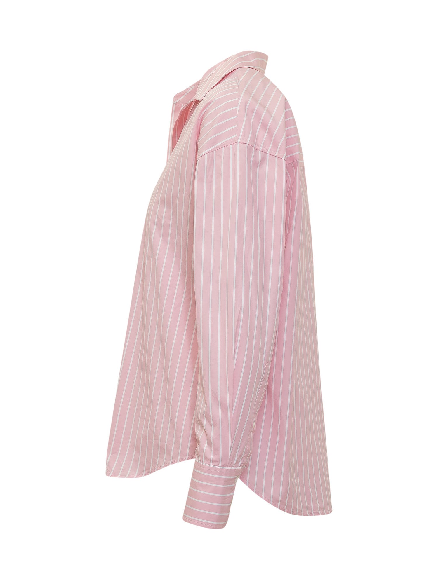 Classica camicia con maniche lunghe, colletto e chiusura frontale con bottoni, caratterizzata da motivo a righe verticali e polsini strutturati