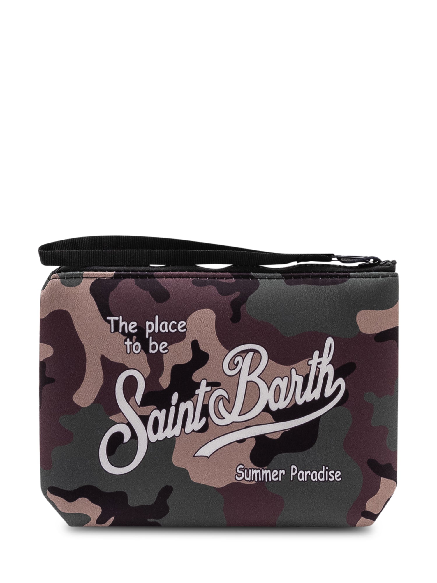 Pochette Aline con struttura morbida e chiusura superiore con zip. Logo frontale stampato e laccetto laterale per il trasporto a mano.