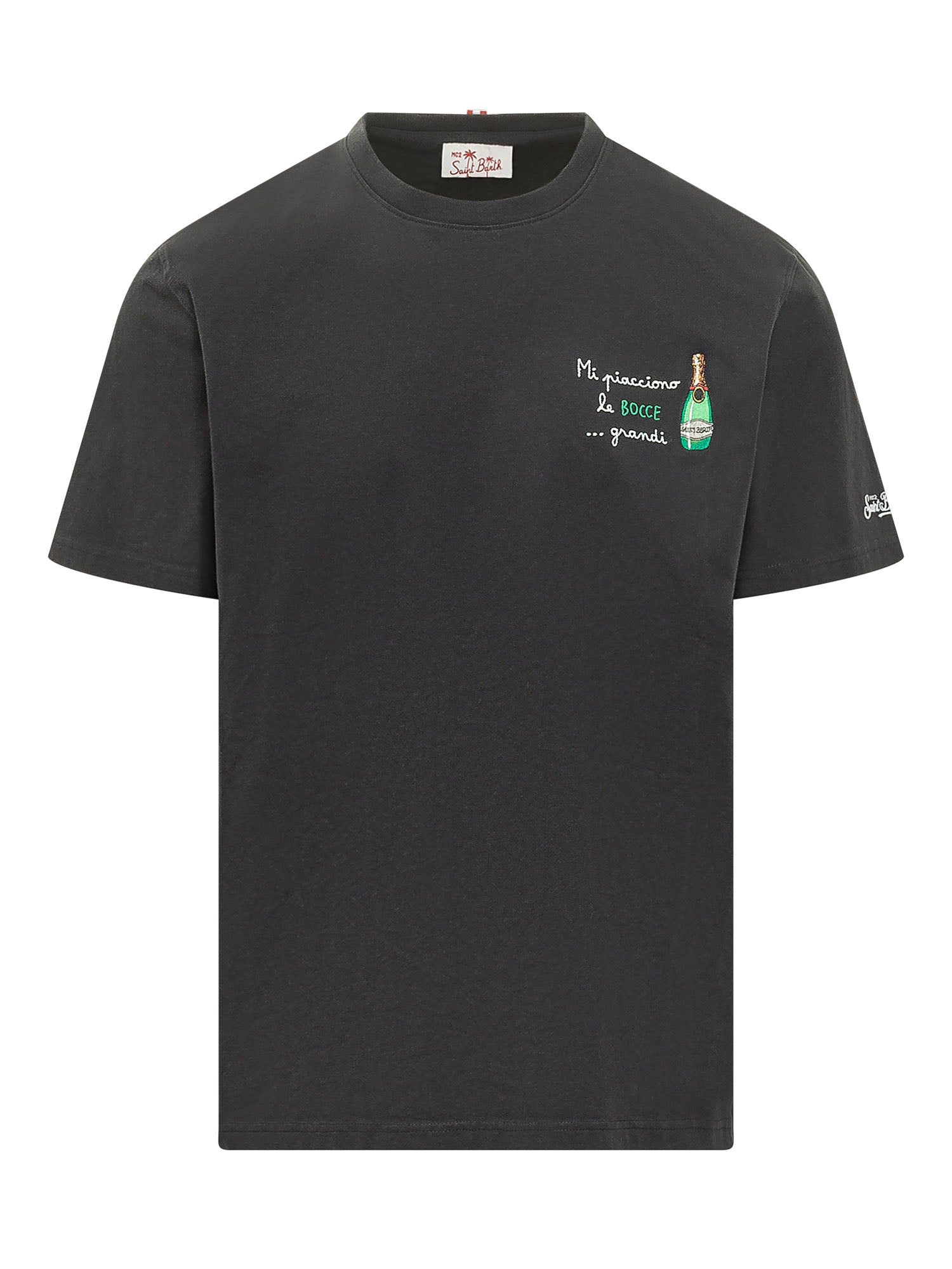 T-shirt girocollo a maniche corte con piccolo ricamo sul petto, linea essenziale e vestibilità regolare