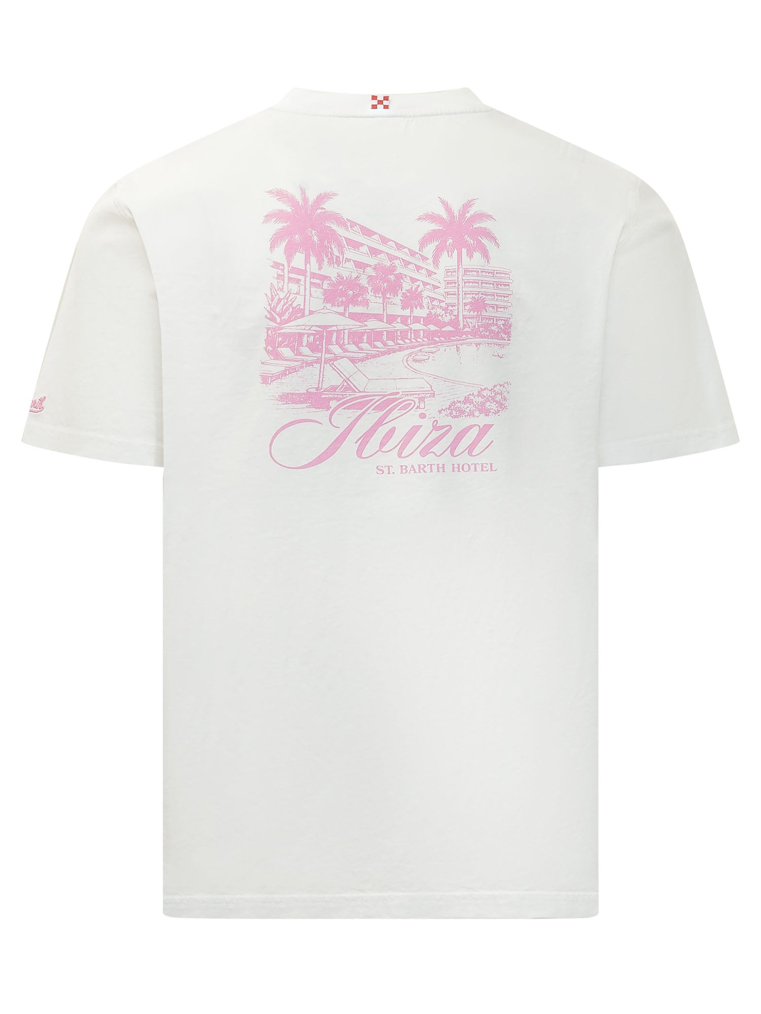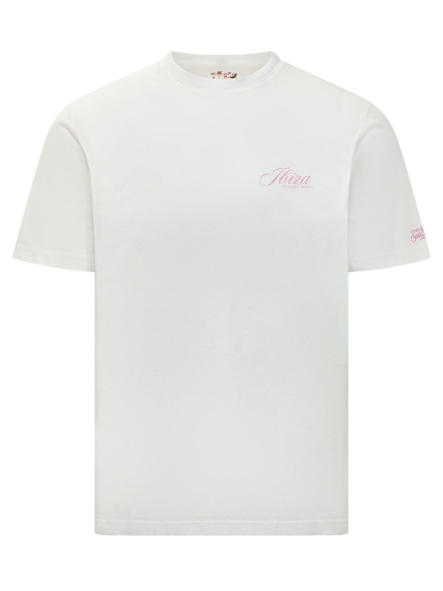 T-shirt girocollo a maniche corte con ricamo decorativo sul petto, linea essenziale e vestibilità regolare