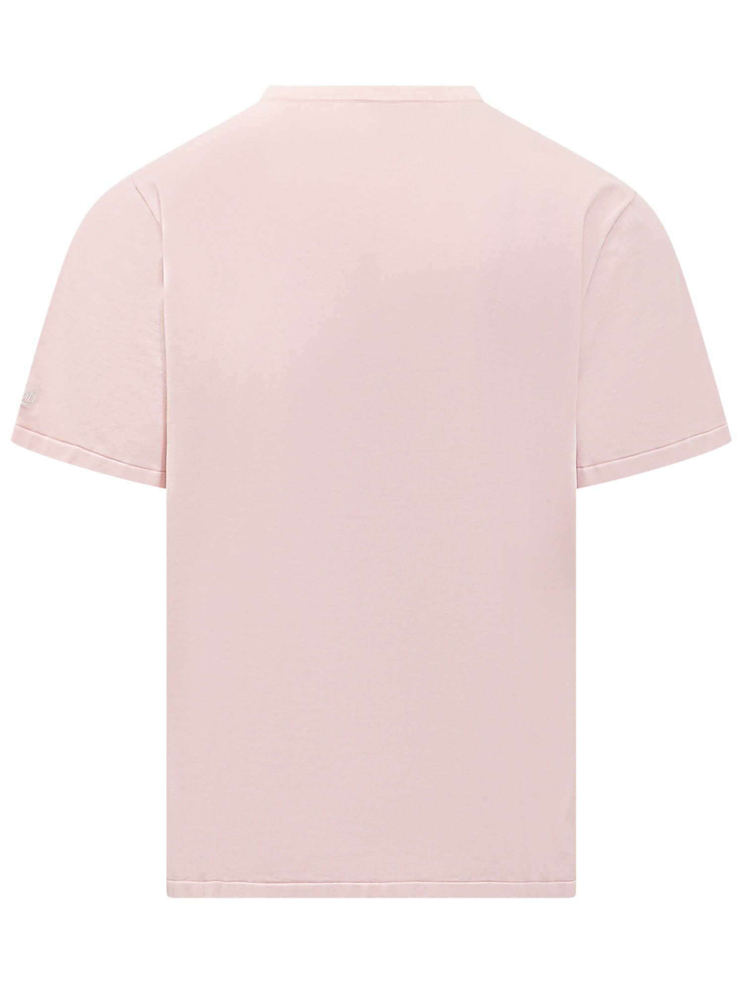 T-shirt girocollo a maniche corte, linea minimal, vestibilità regolare, superficie liscia con dettaglio logo sulla manica