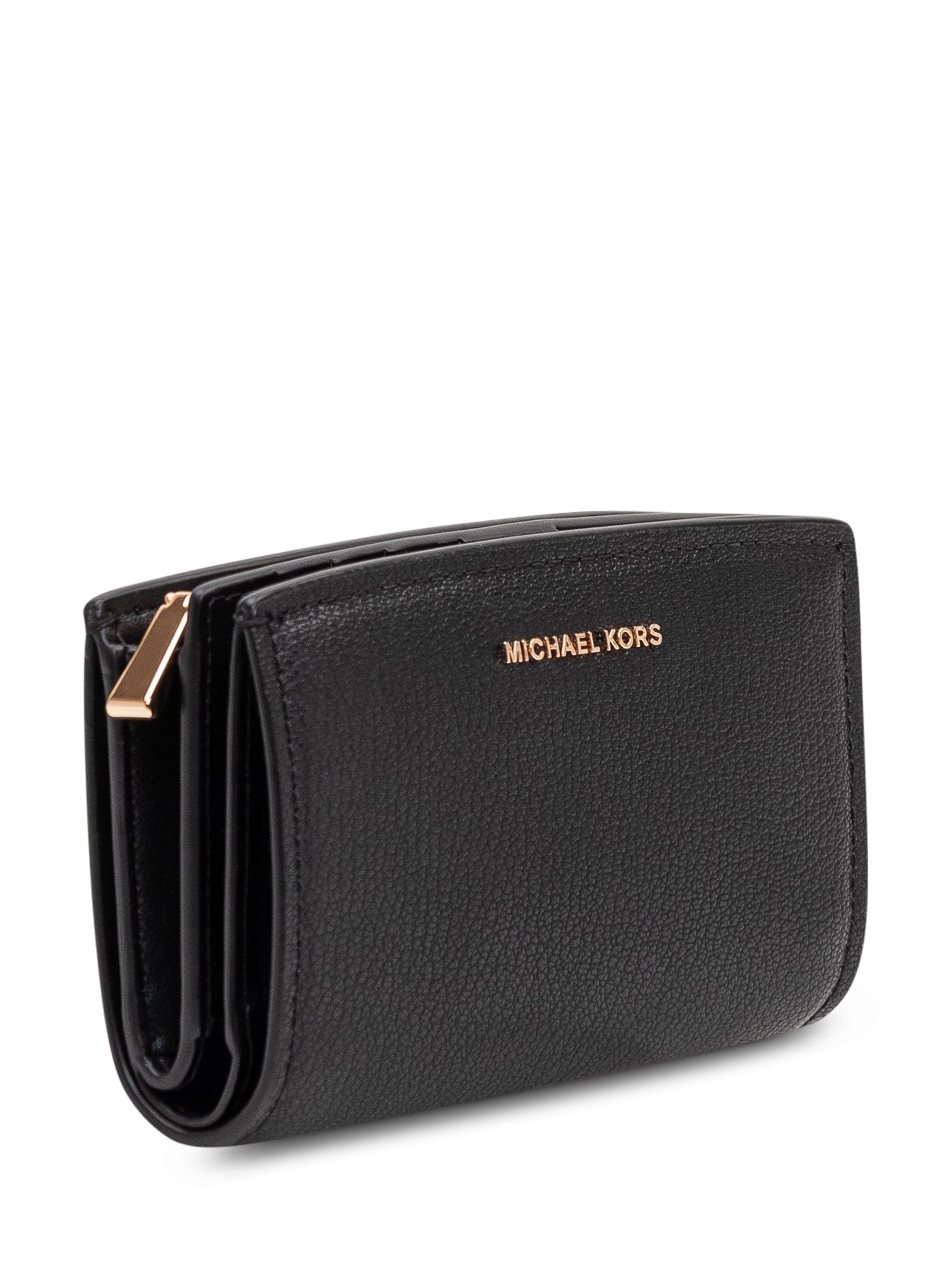 Portafoglio compatto con chiusura zip-around e logo frontale. Interni organizzati per carte e banconote.
