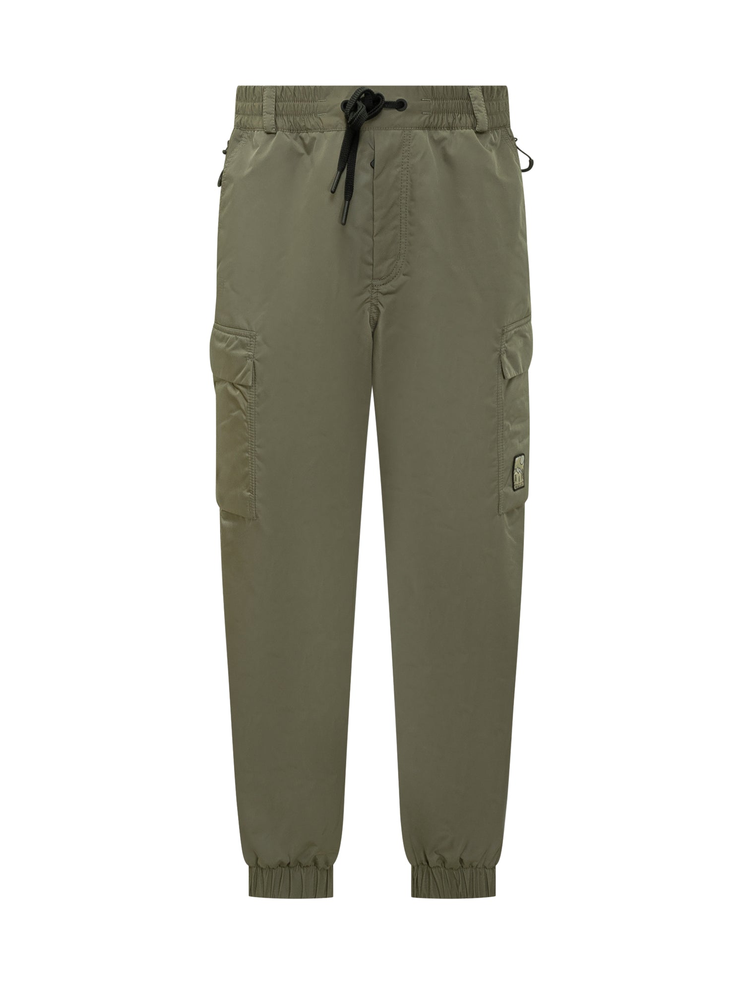 Pantaloni cargo Moncler Grenoble in tessuto tecnico verde oliva, con vita regolabile con coulisse, tasche cargo laterali e fondo elasticizzato.