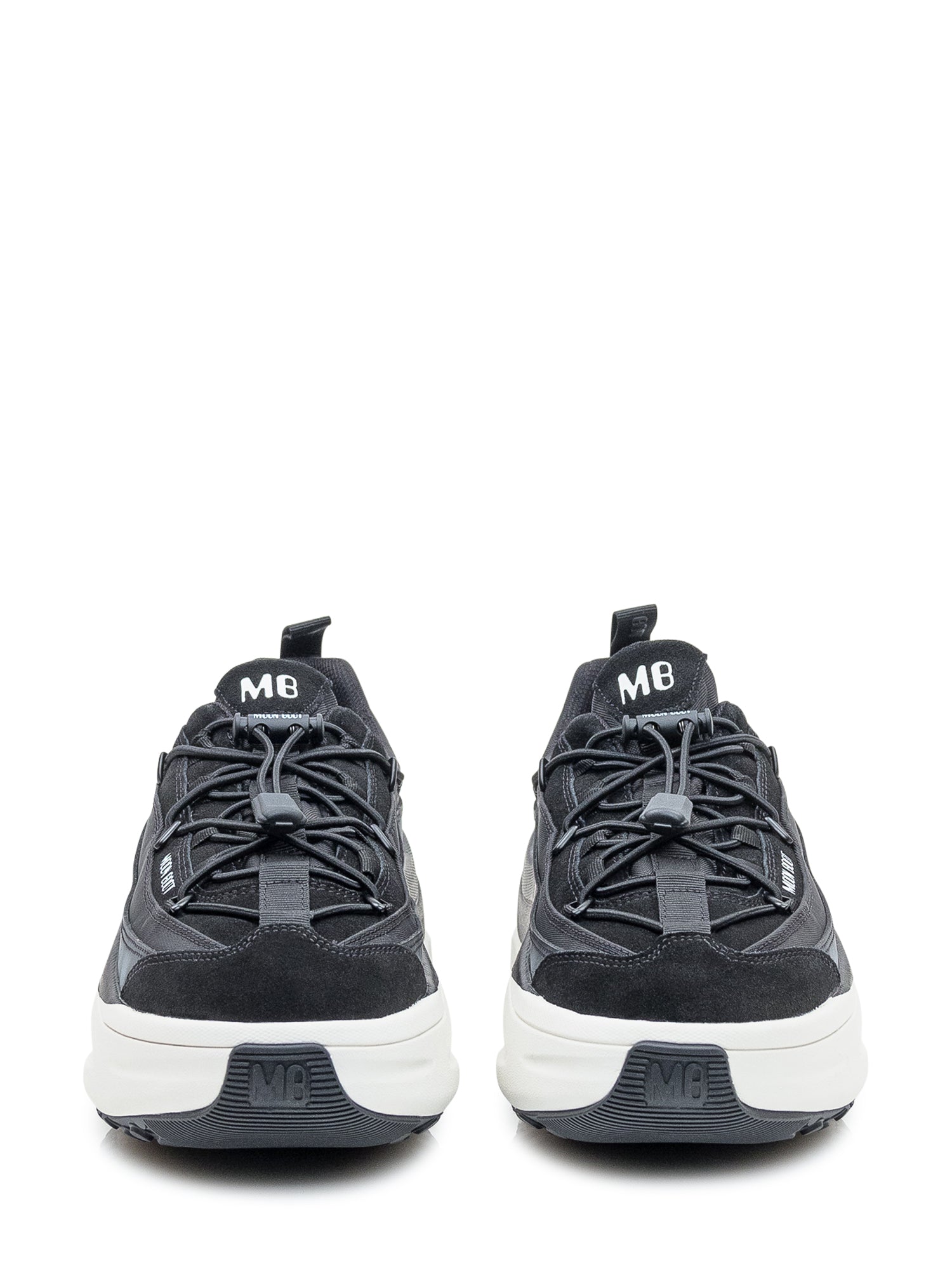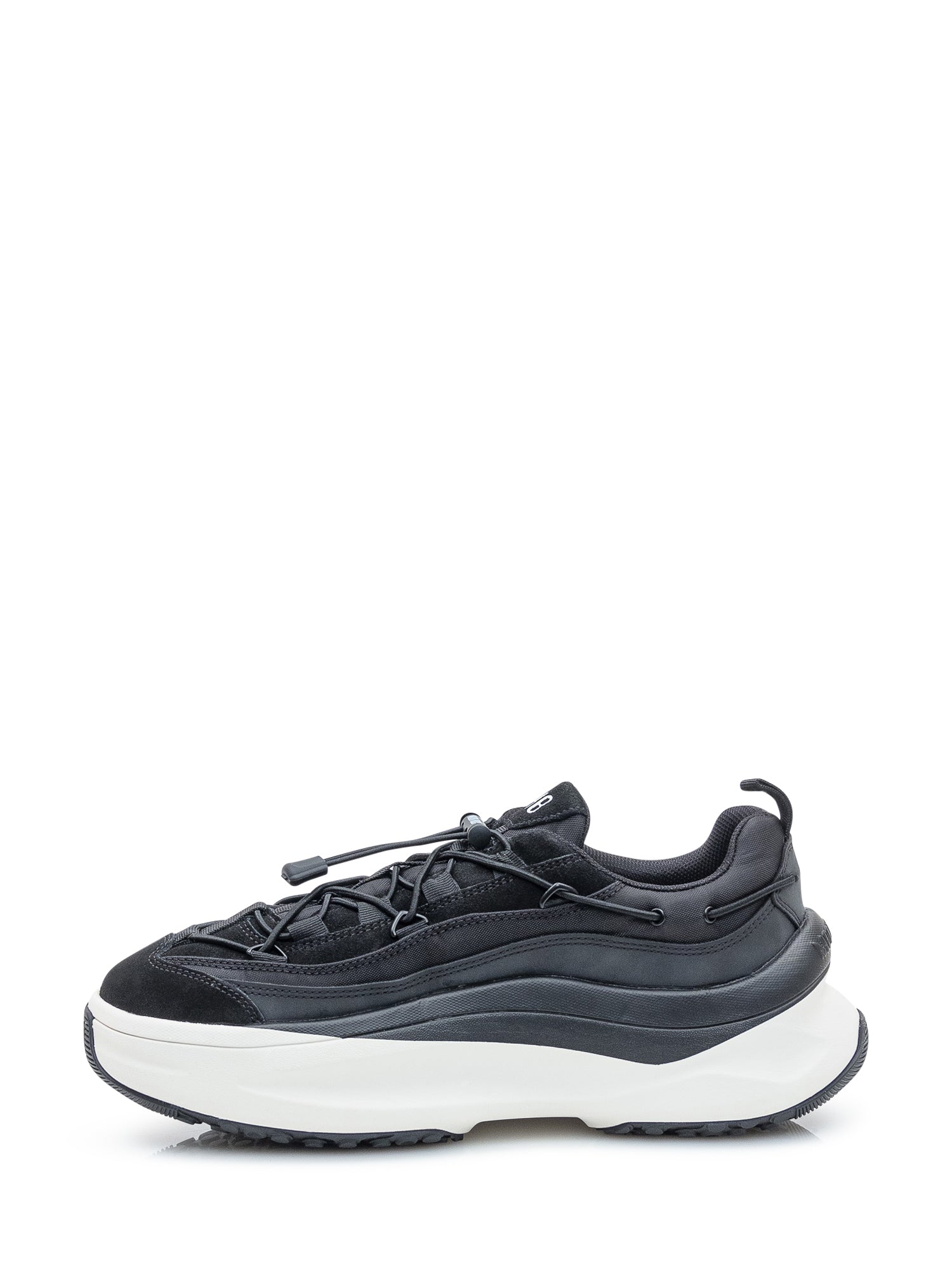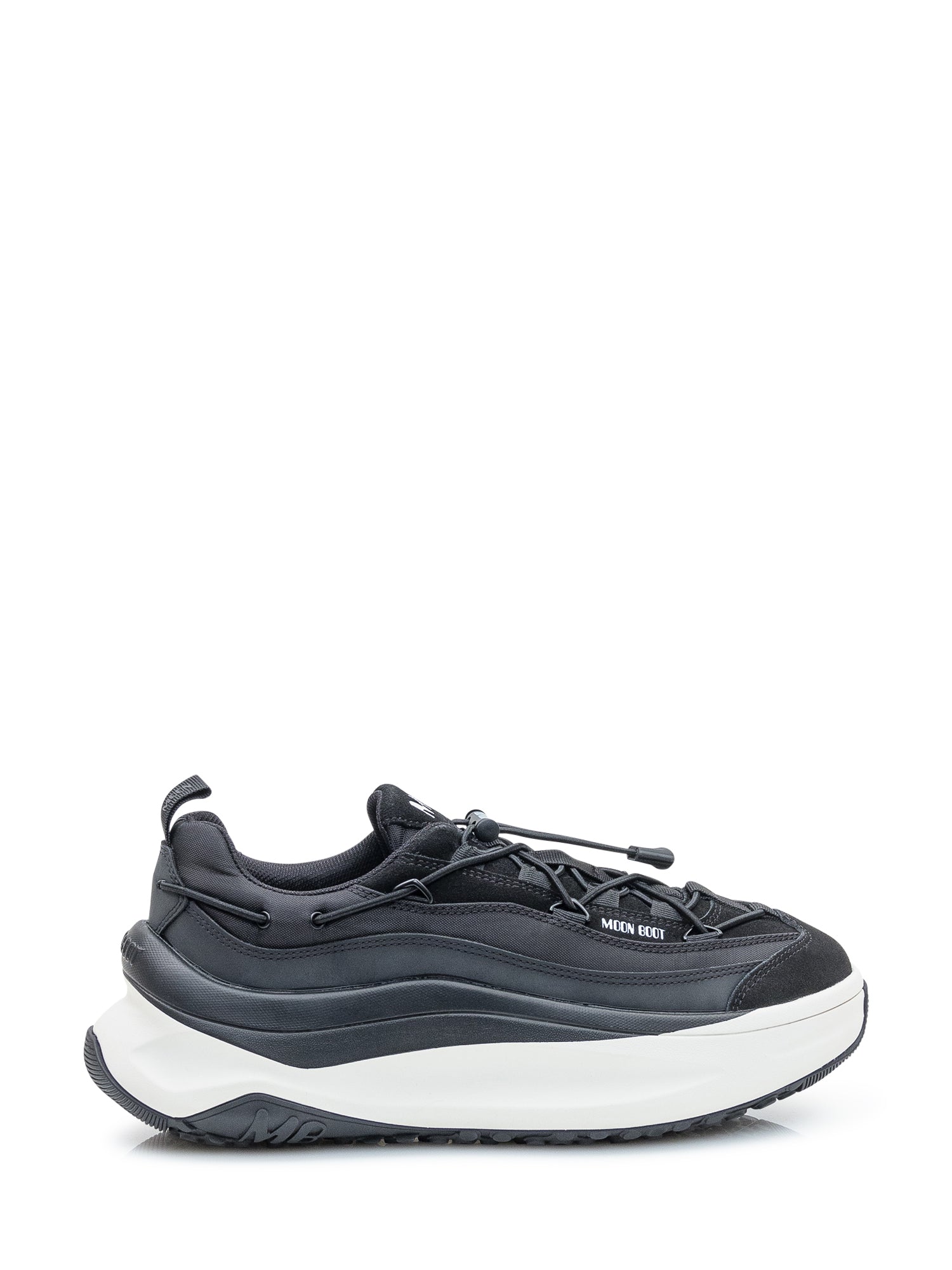 Sneakers Moon Boot Moon247 Xlace in tessuto tecnico nero con suola chunky bicolore. Design futuristico, chiusura con laccio elastico.