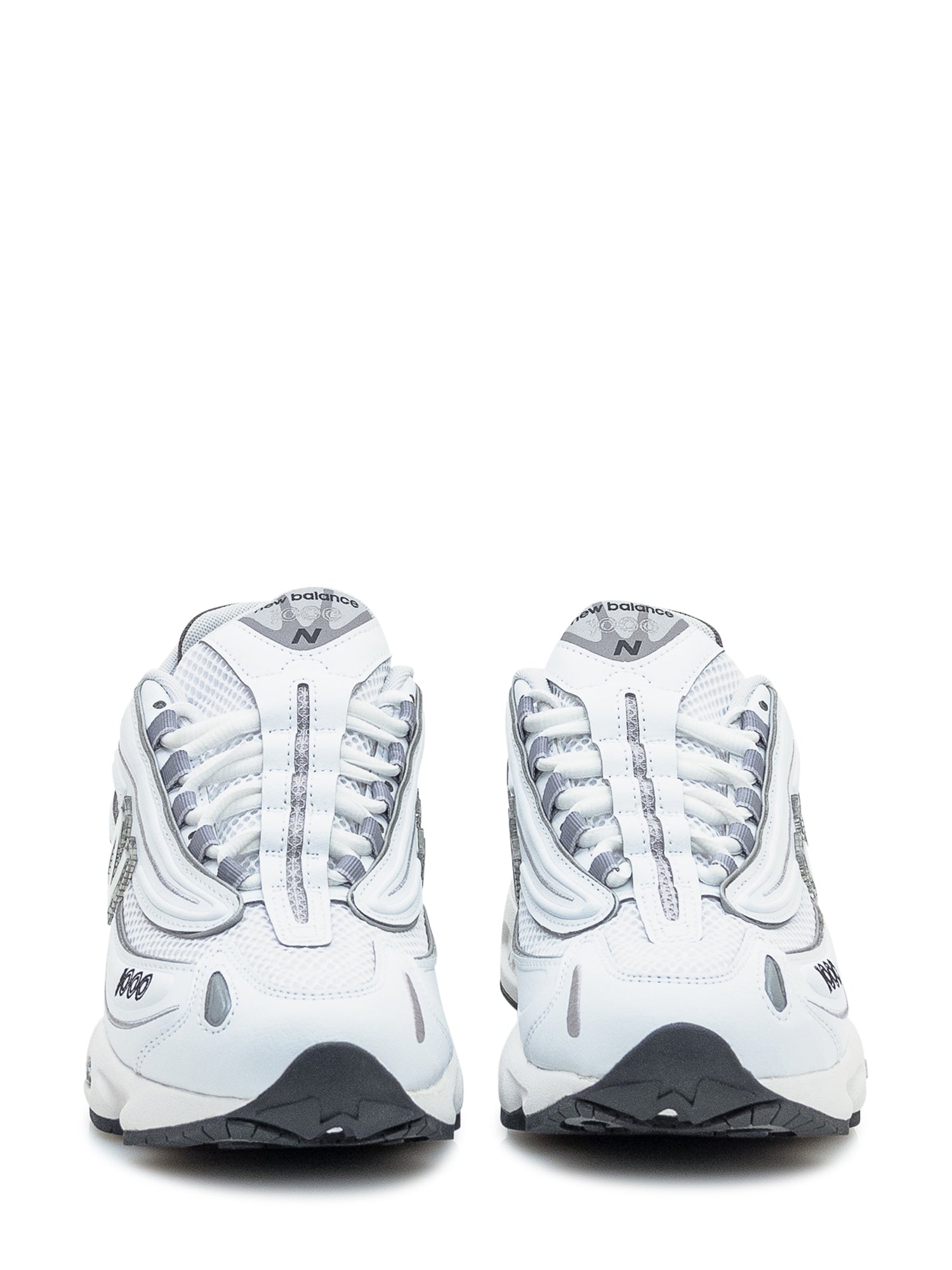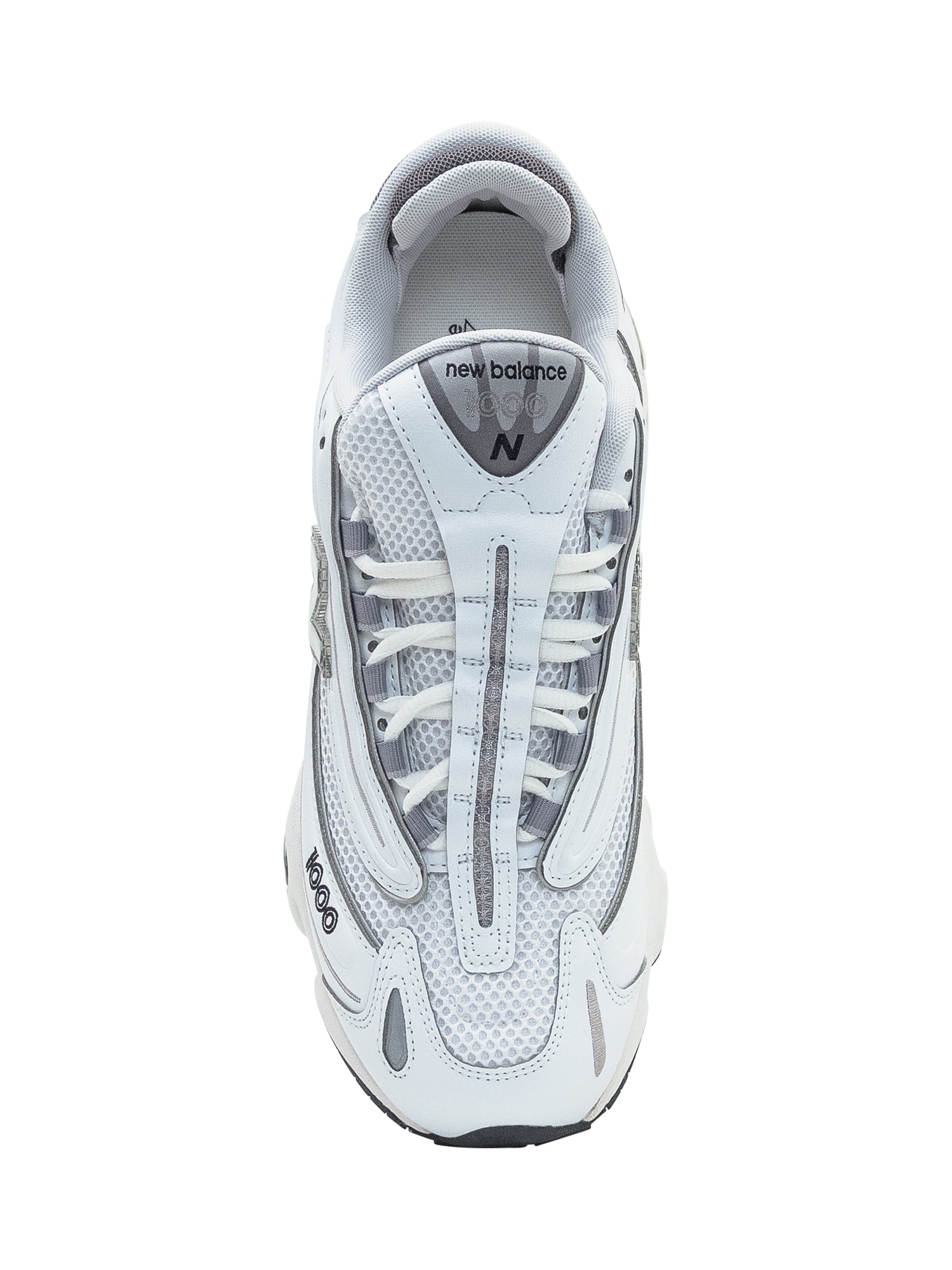 neakers New Balance 1000 in mesh e pelle bianca con dettagli grigi. Design rétro e suola ammortizzata per massimo comfort e stile casual contemporaneo.