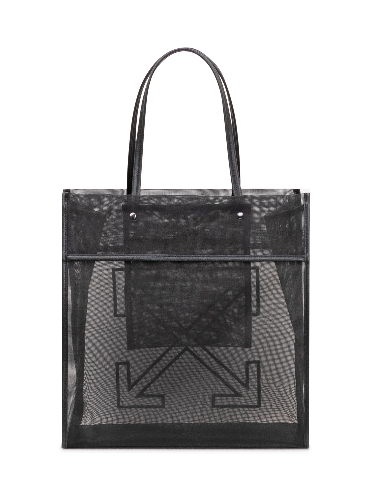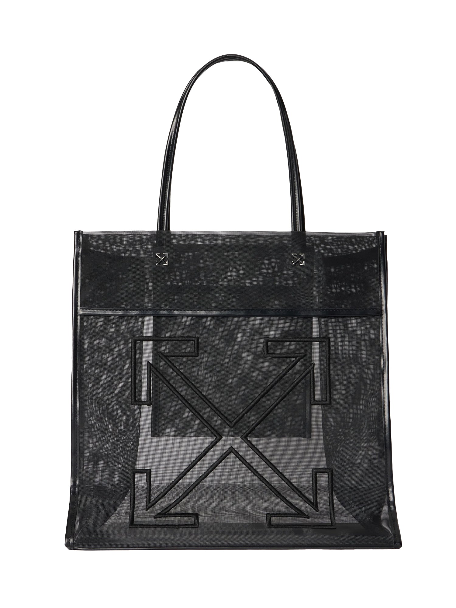 Borsa tote in rete con struttura ampia, doppi manici lunghi e logo frontale applicato, design leggero e capiente