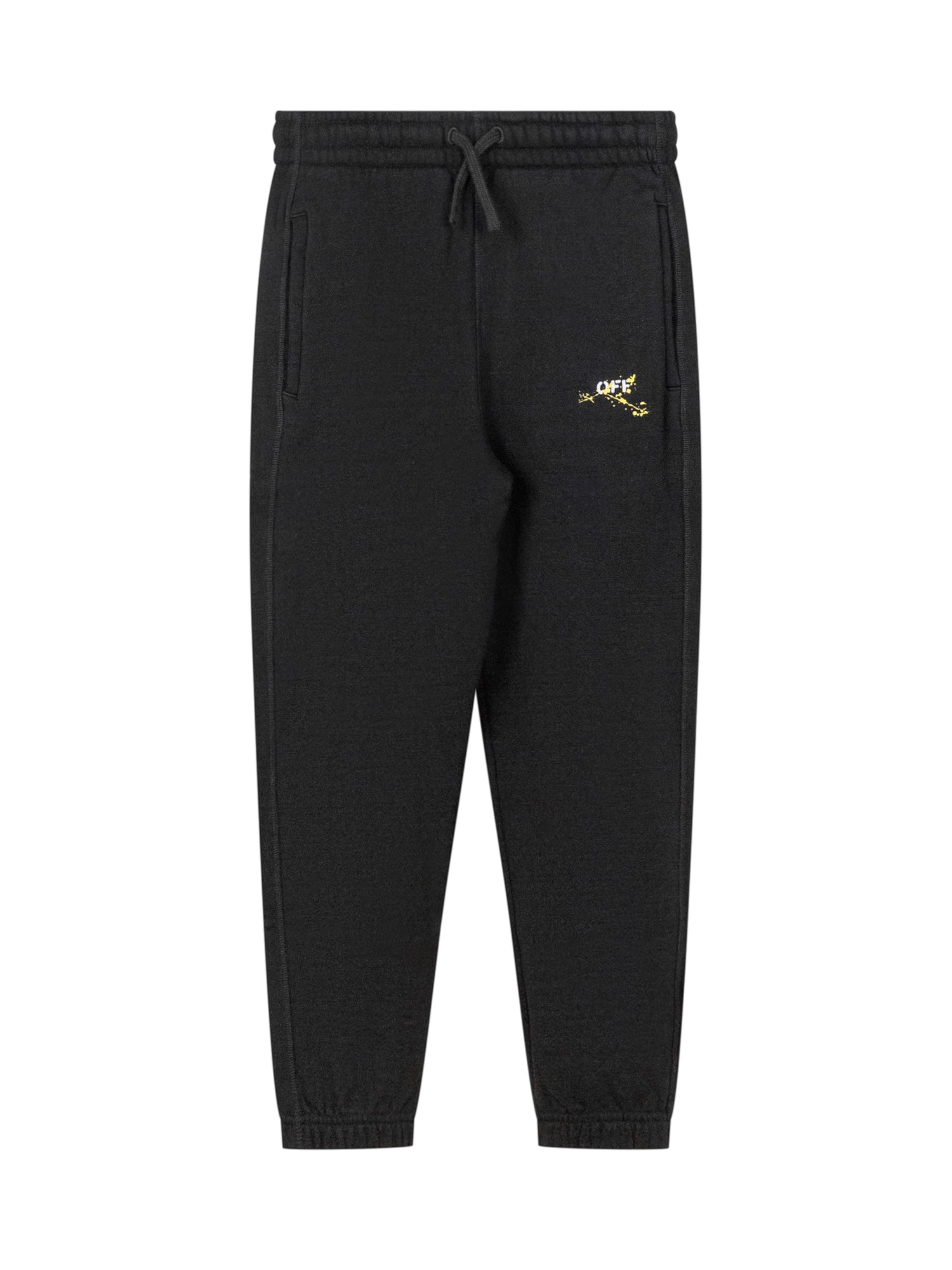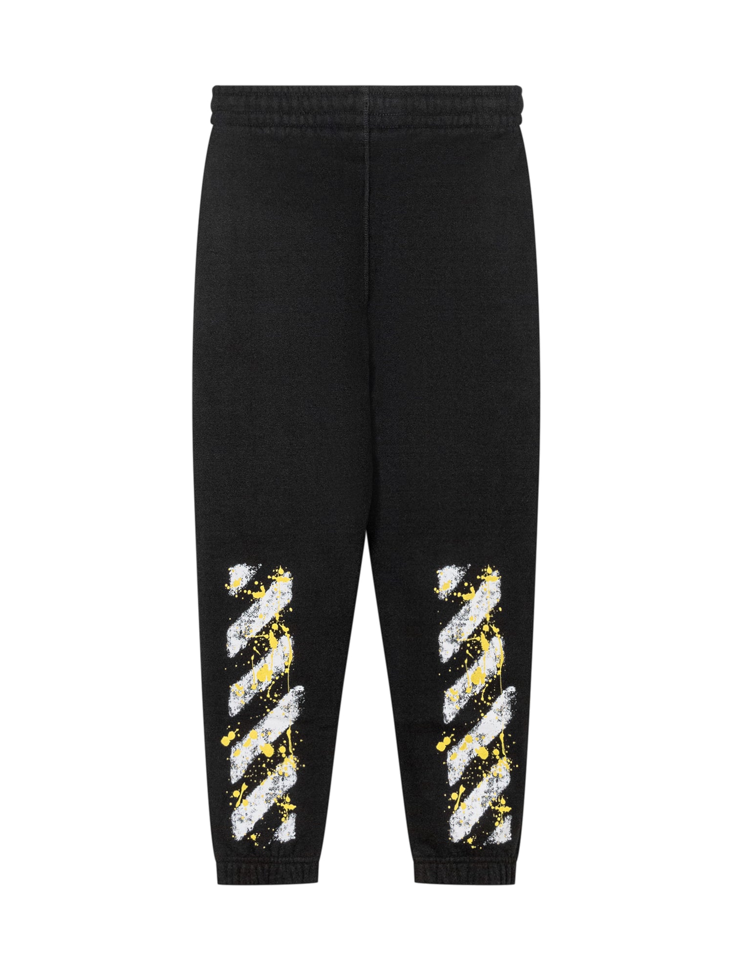 Pantaloni neri Off-White Kids con logo frontale e bande verniciate a contrasto sul retro. Realizzati in cotone, con elastico e coulisse in vita per un comfort ottimale.