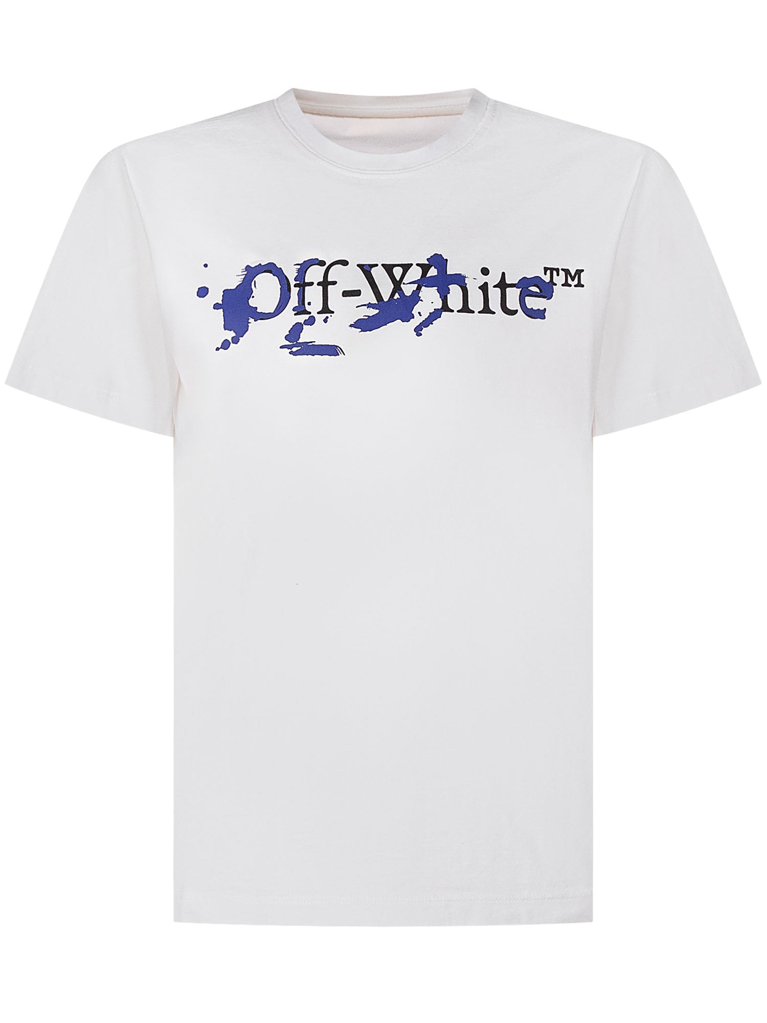 T-shirt a maniche corte con girocollo e stampa grafica frontale in stile vernice, design moderno e urbano