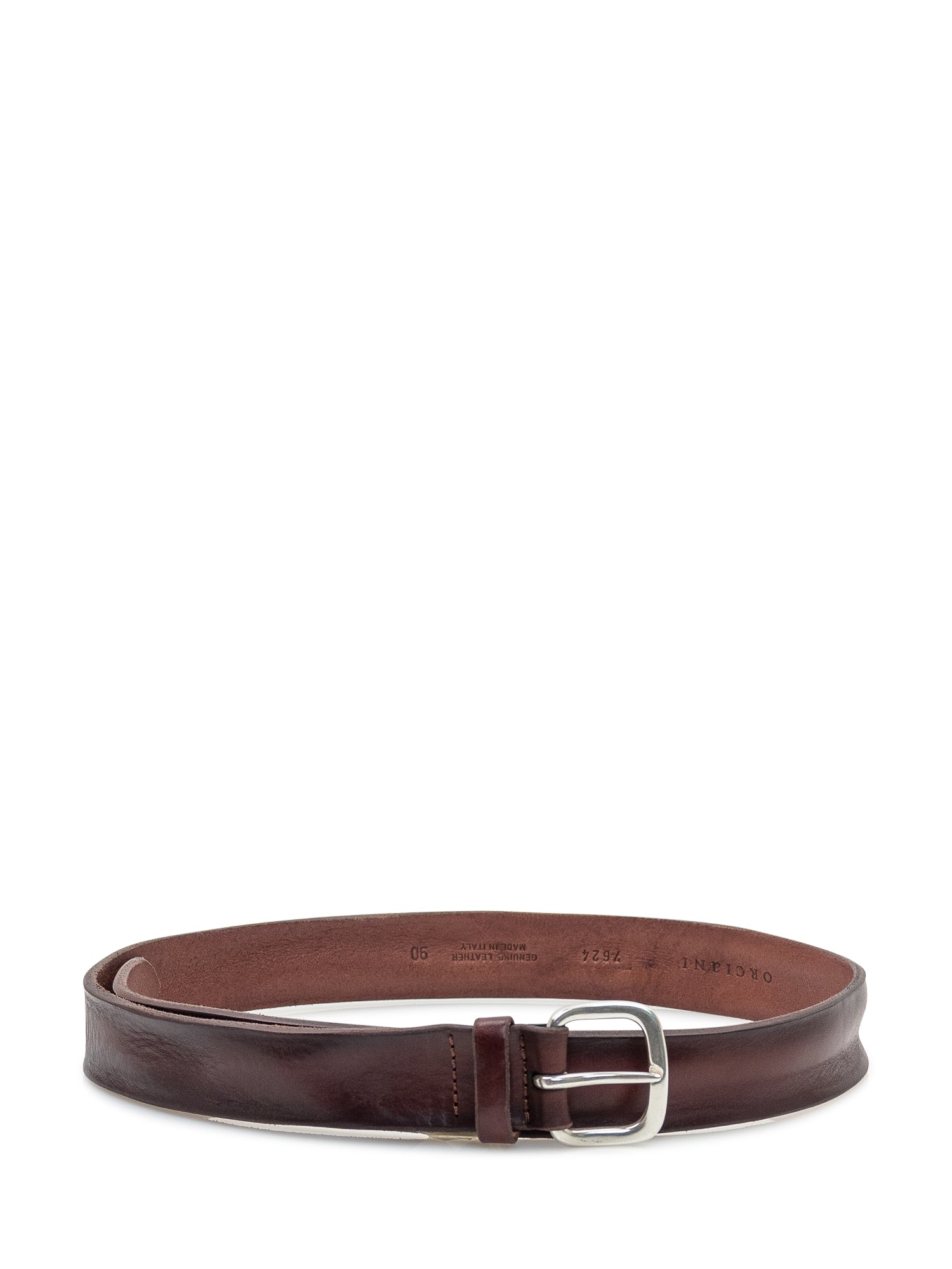 Cintura Orciani in pelle marrone liscia con fibbia in metallo argentato.