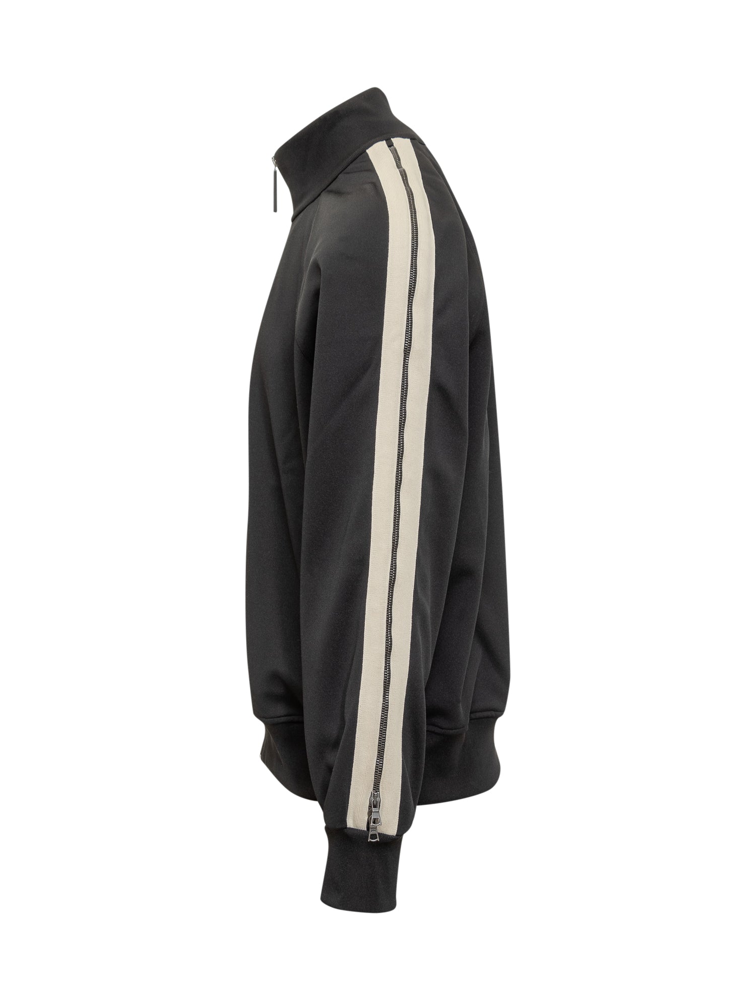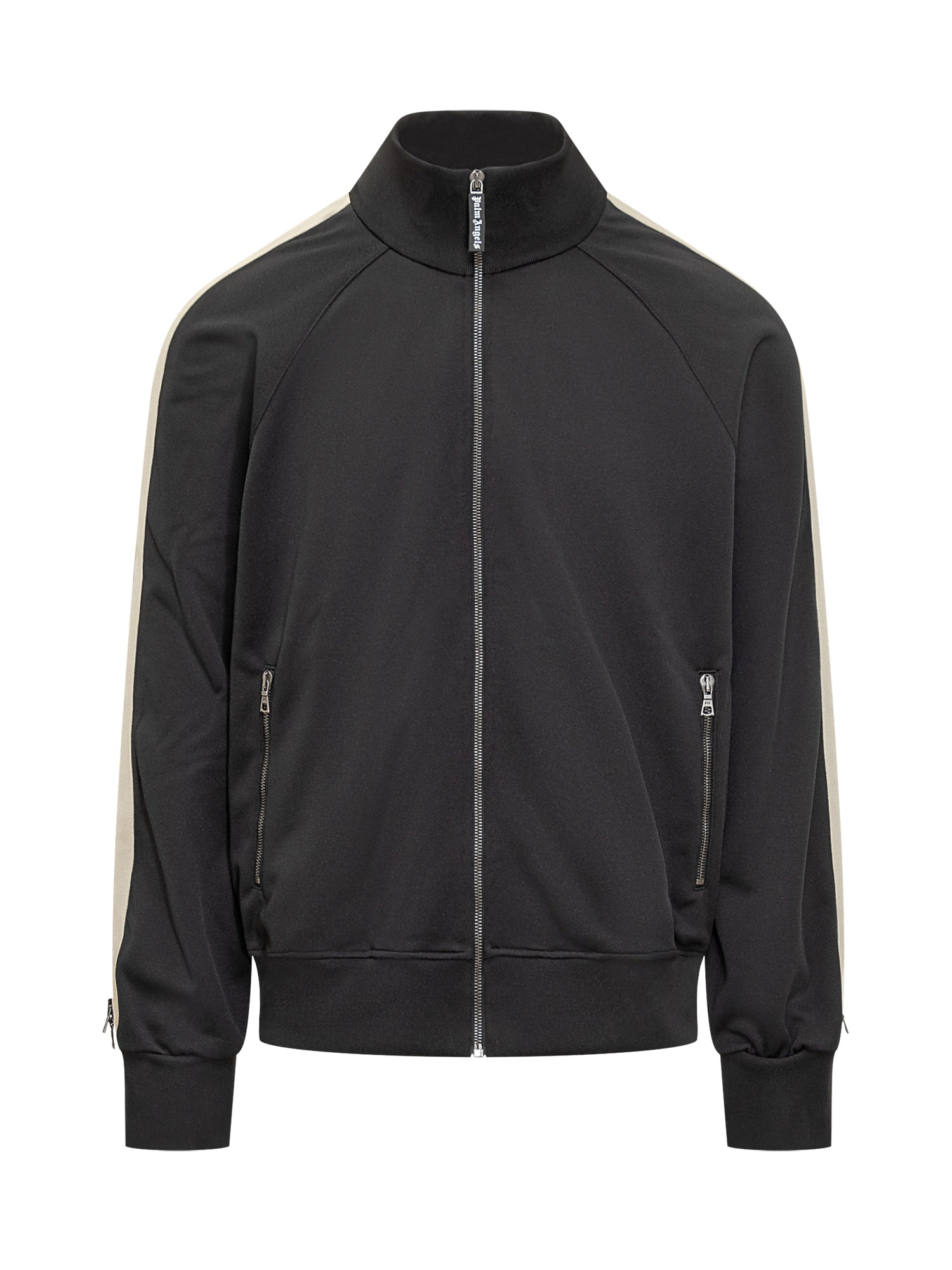 Track jacket Palm Angels nera con zip a tutta lunghezza e bande laterali color panna.