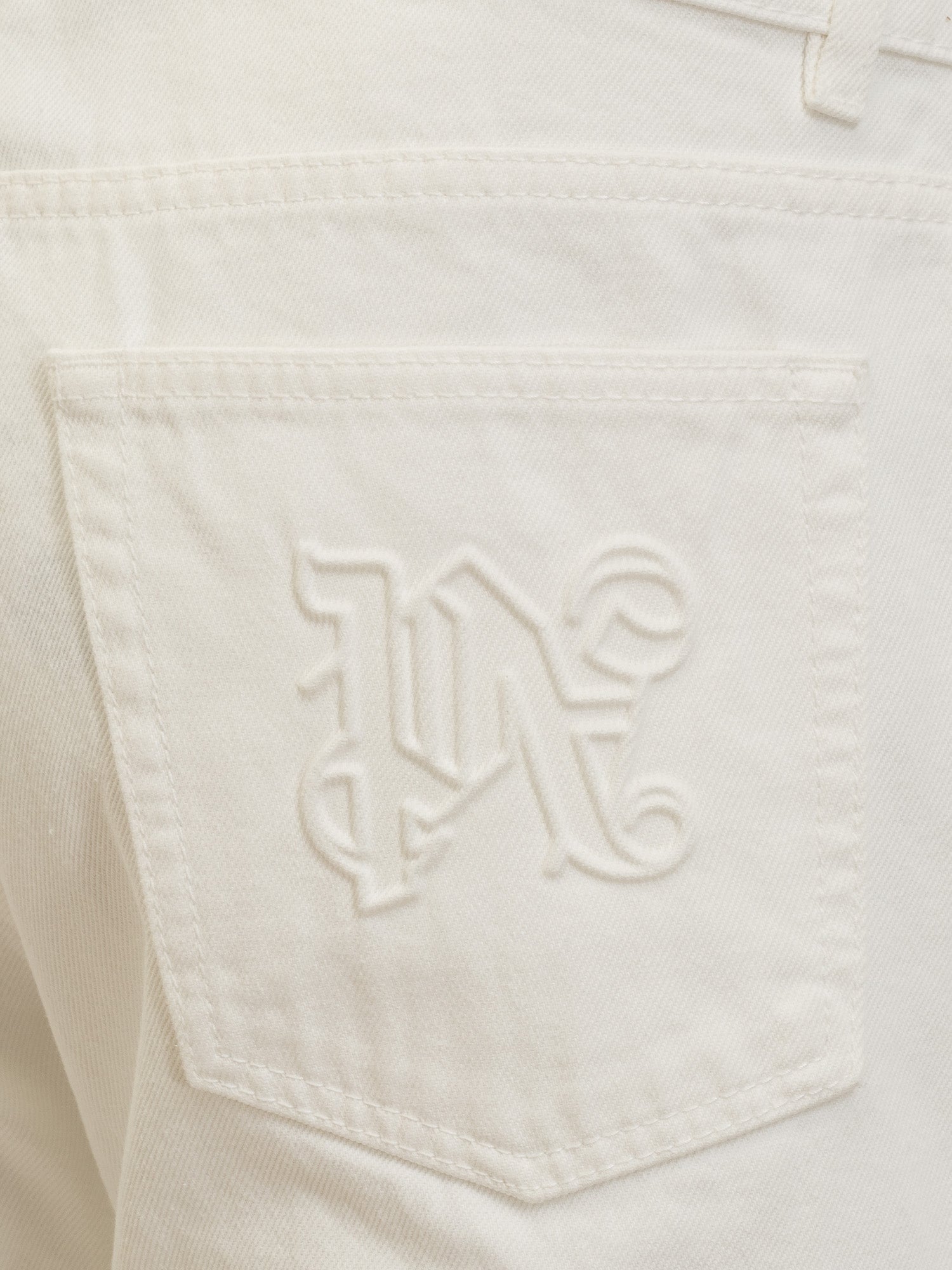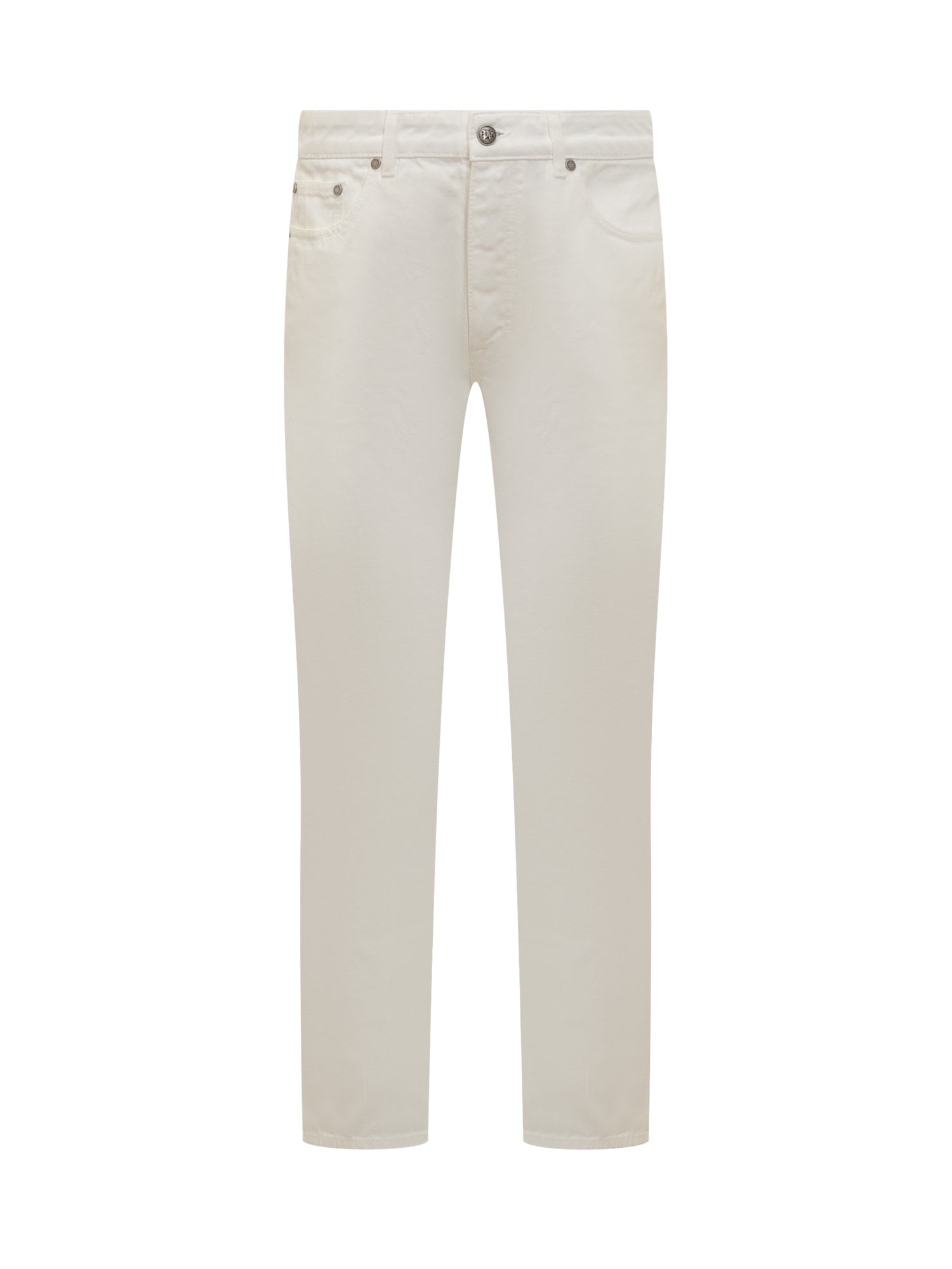 Jeans straight fit. Chiusura con bottoni. Passanti per cintura. Cinque tasche. Tasca con Monogram PA in rilievo sul retro.