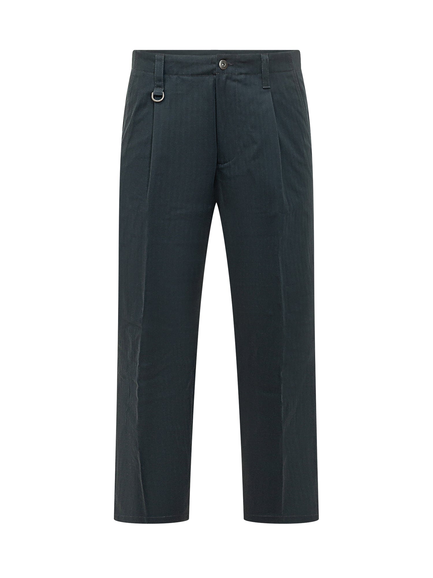 Pantalone lungo in tessuto con chiusura frontale con bottone e zip. Modello con passanti in vita, dettaglio ad anello laterale e tasche laterali, caratterizzato da linea dritta e vestibilità regolare per uno stile elegante e versatile.