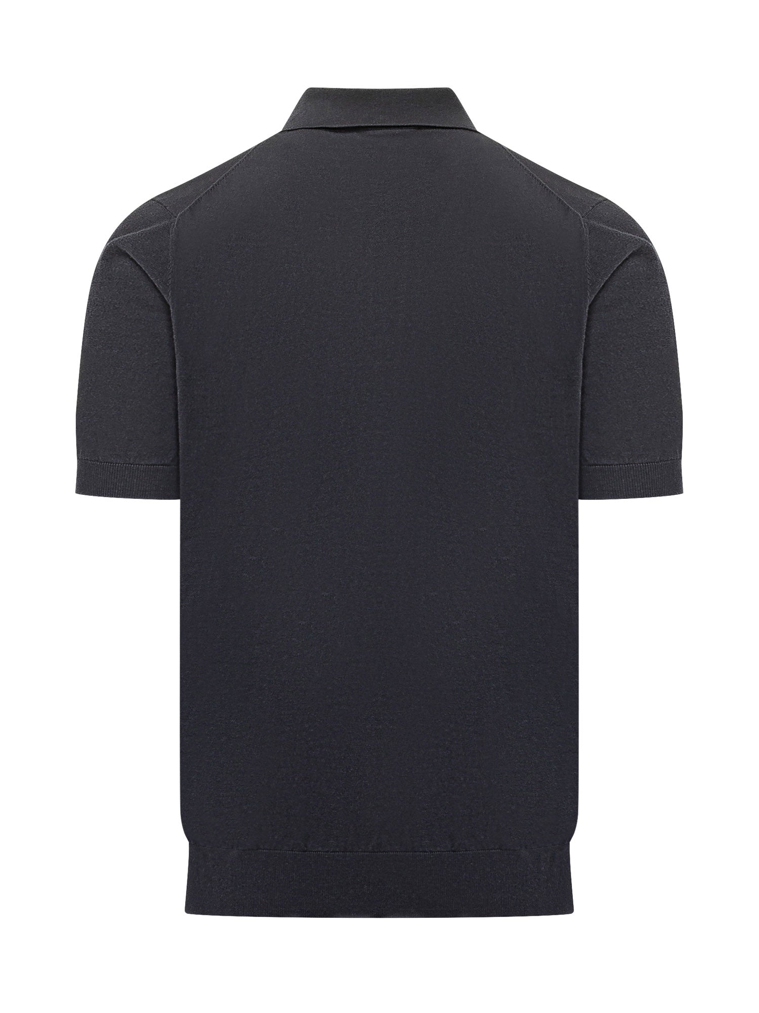 Maglia a polo a maniche corte con colletto classico e chiusura frontale con bottoni. Modello dalla linea pulita con finiture a costine su maniche e fondo, caratterizzato da vestibilità regolare per uno stile elegante e contemporaneo.