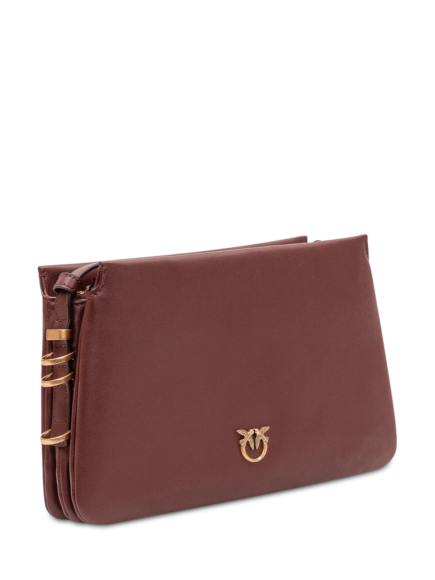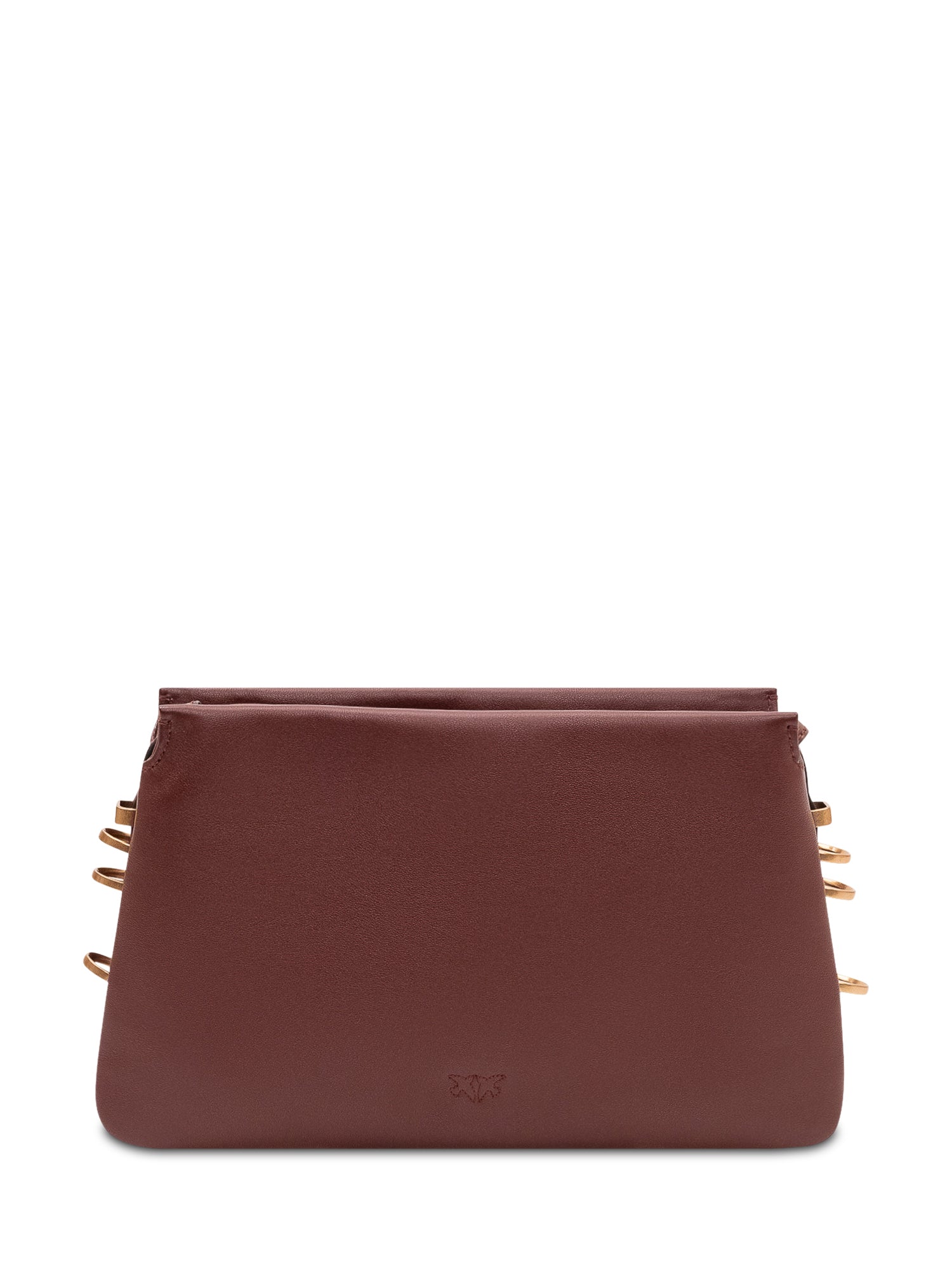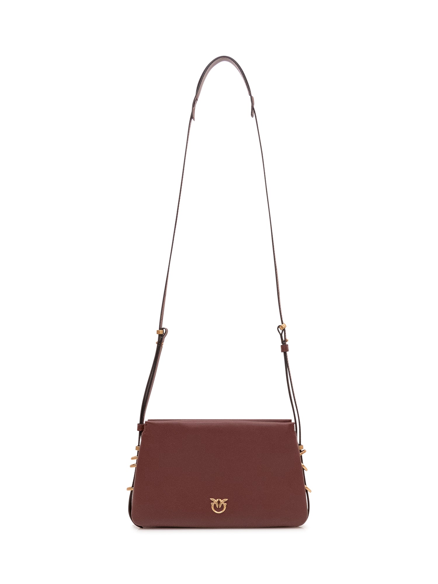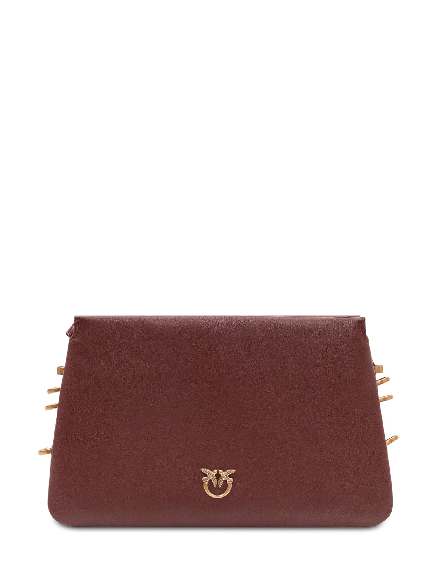 Borsa compatta con patta frontale e chiusura con logo metallico, struttura rettangolare e design lineare