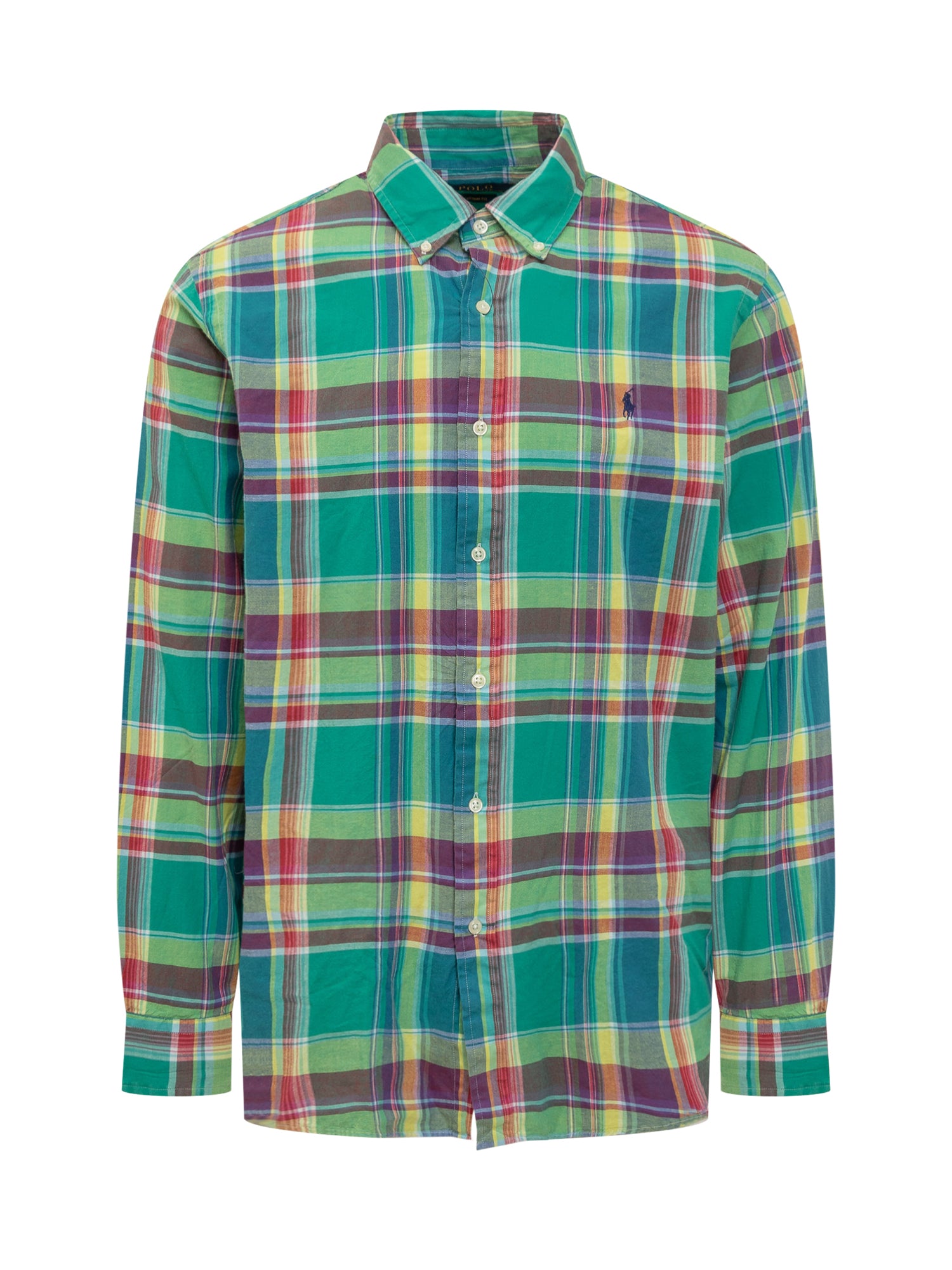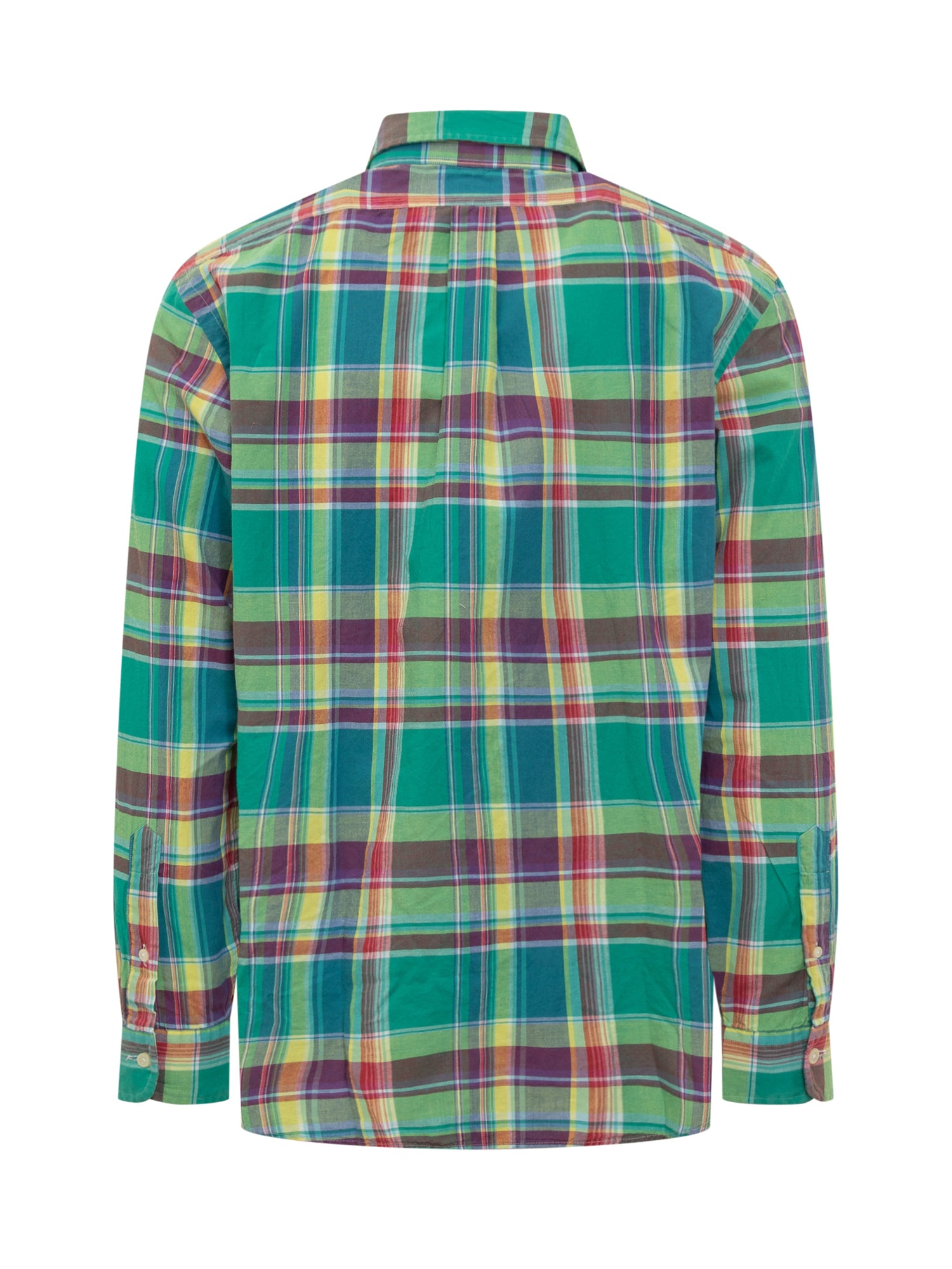 Camicia verde. Tessuto ceck. Maniche lunghe. Chiusura con bottoni. Colletto button down. Bottoni ai polsi.