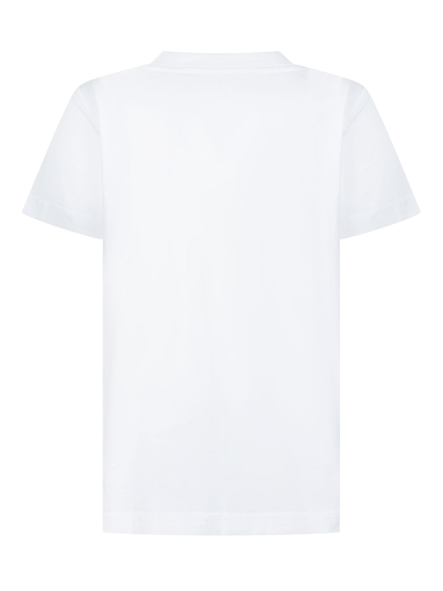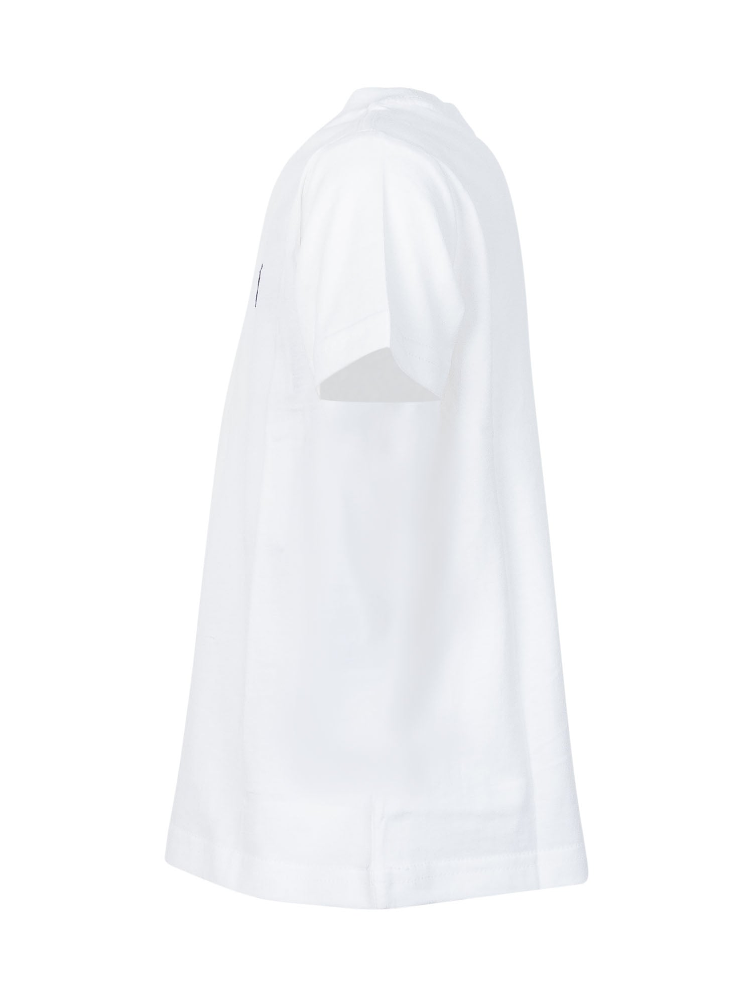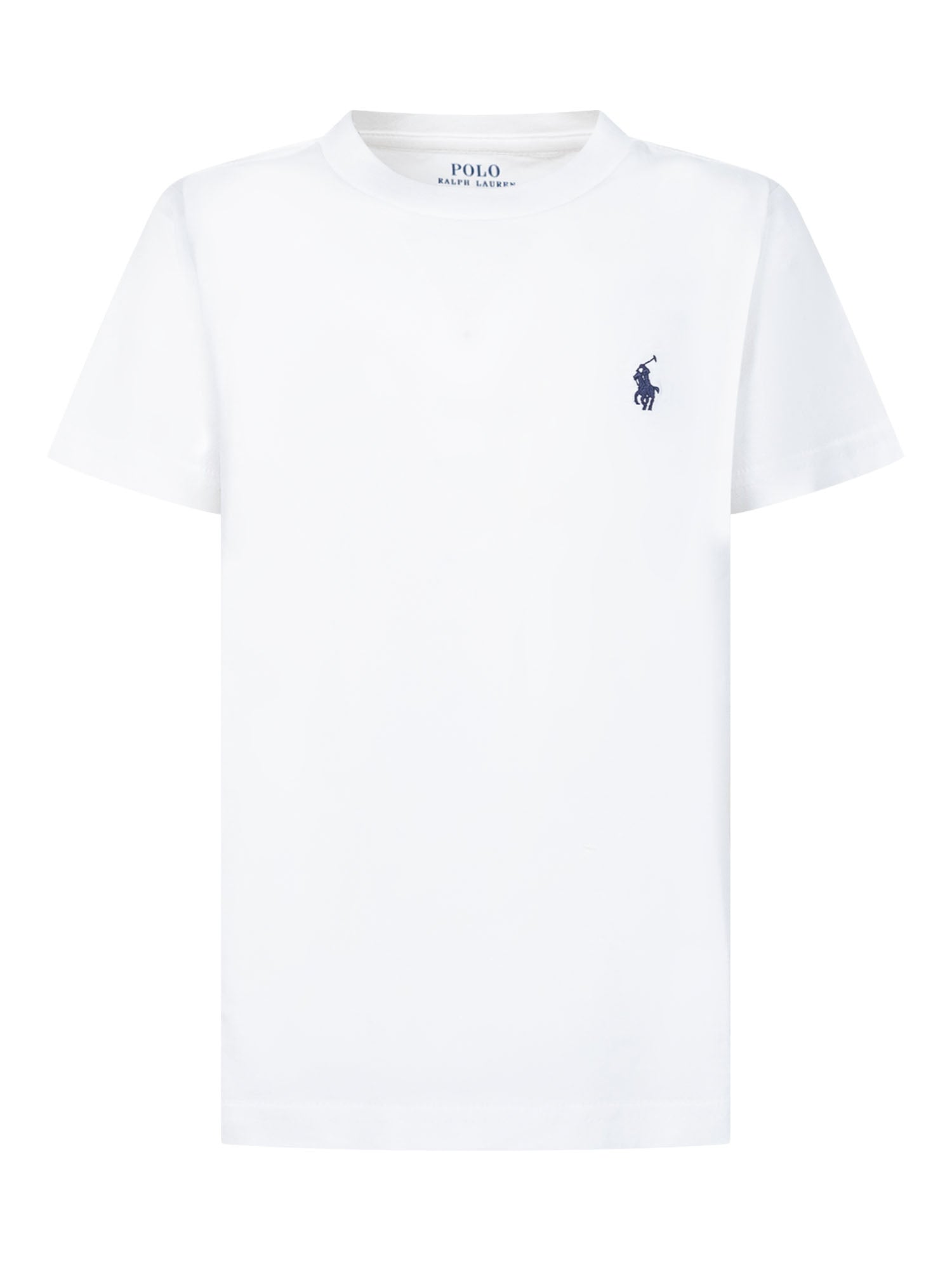 T-shirt bambino in morbido cotone con girocollo e maniche corte, impreziosita dall iconico logo ricamato sul petto per uno stile essenziale e versatile.