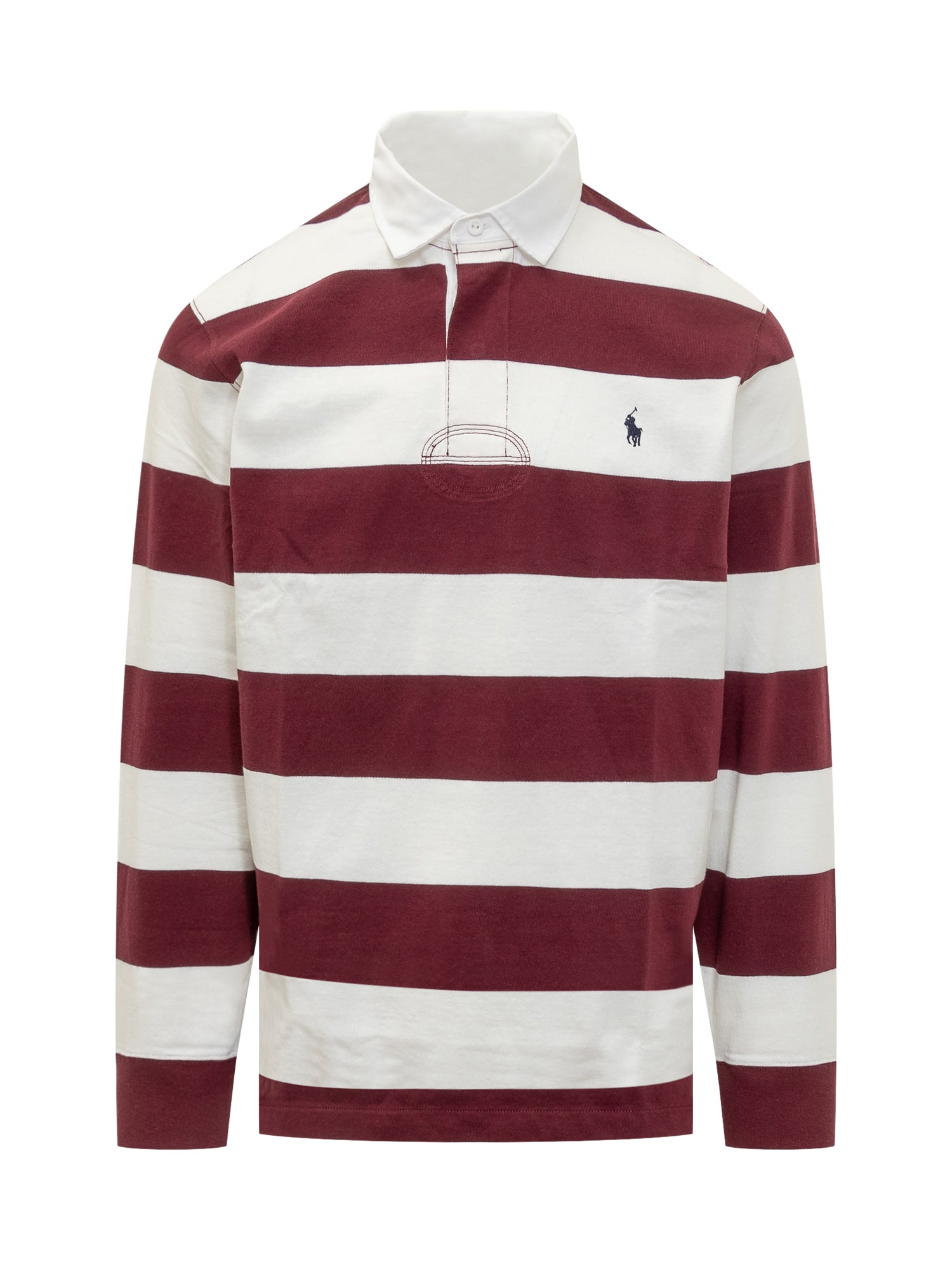 Maglia Rugby Polo Ralph Lauren in cotone con righe orizzontali e colletto bianco.