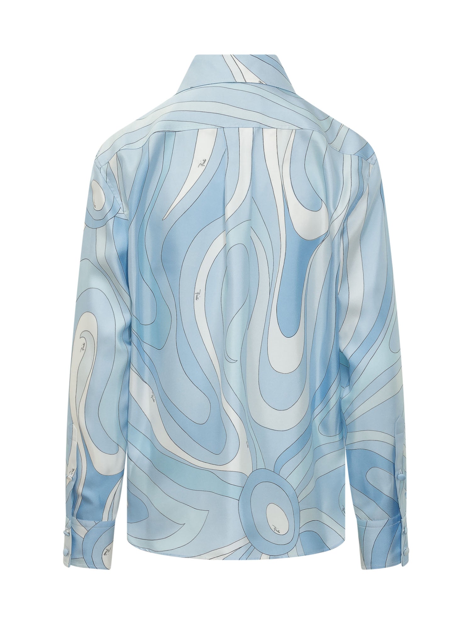 Camicia a maniche lunghe con colletto classico e chiusura frontale con bottoni, design fluido con stampa astratta all over e linea regolare