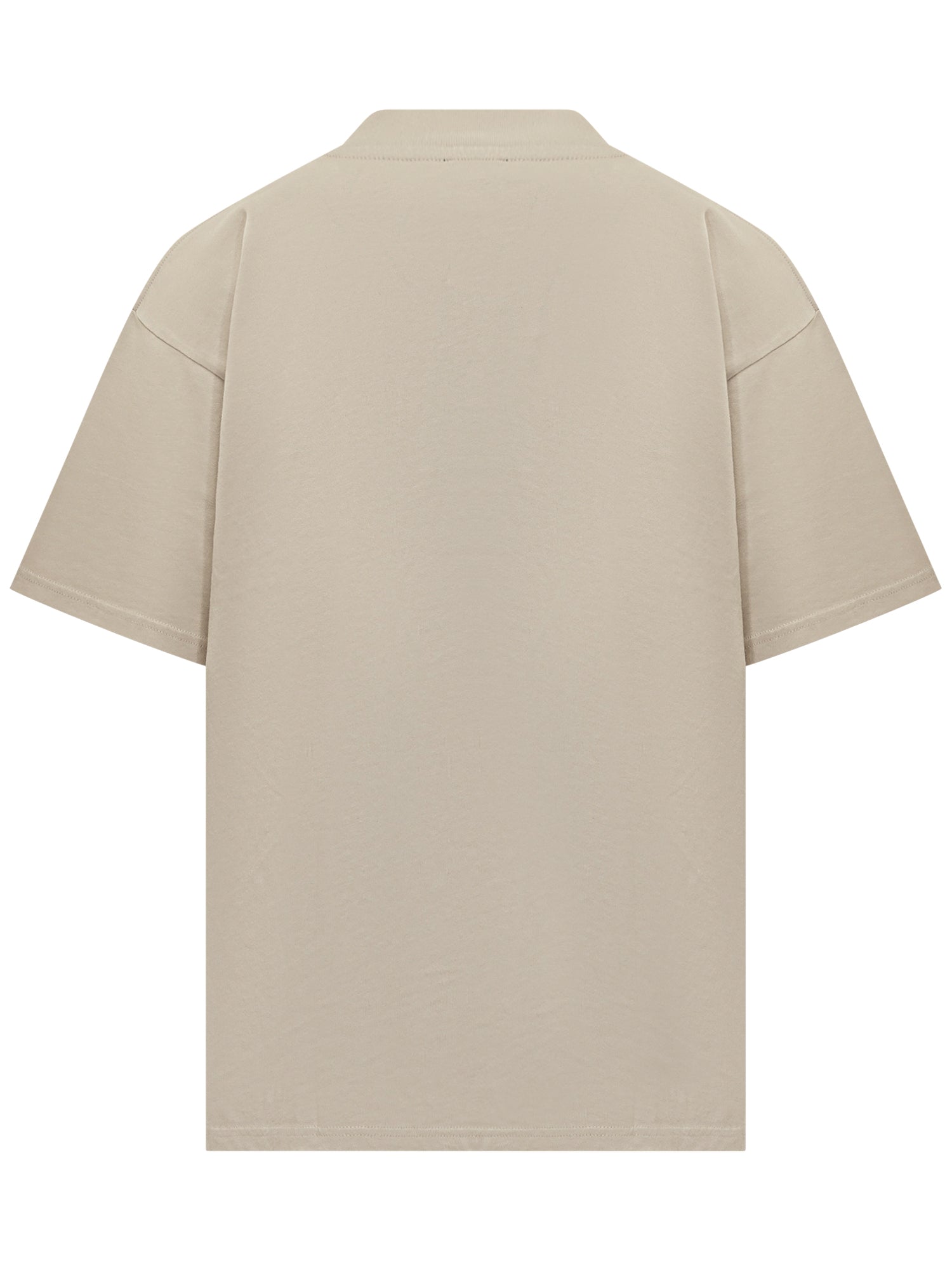 T-shirt Represent in cotone beige con grafica frontale di tre dobermann e scritta gotica.