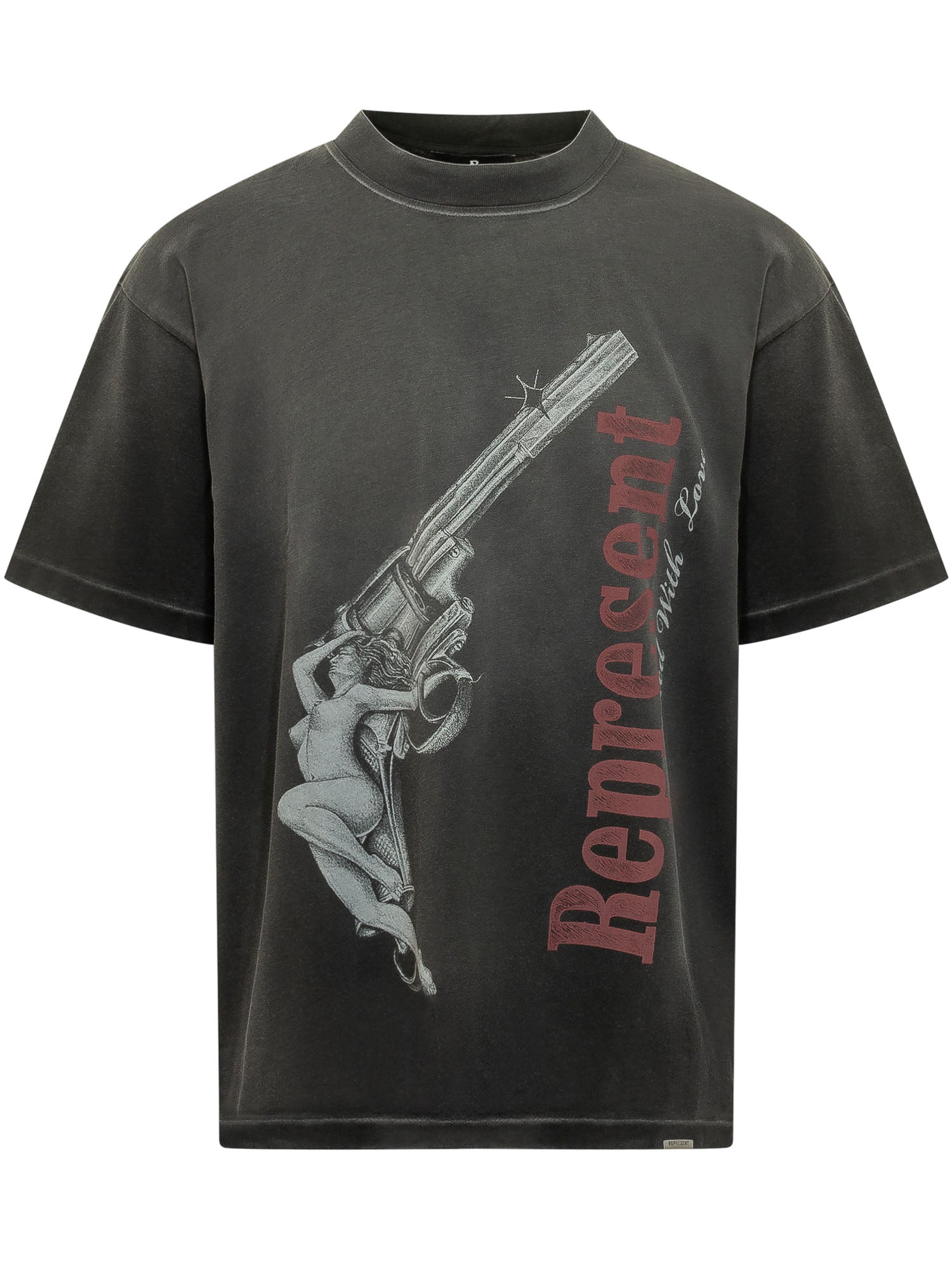 T-shirt a maniche corte con girocollo, stampa grafica frontale con scritte e illustrazione