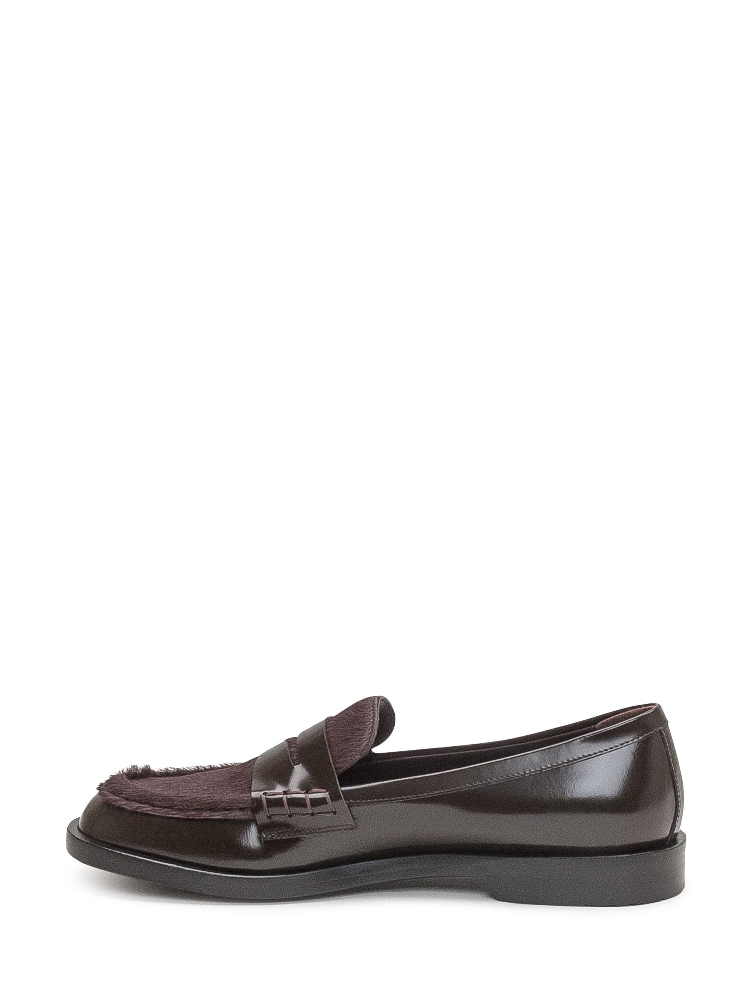 Mocassini Roberto Festa in pelle lucida con inserto in cavallino e mascherina.