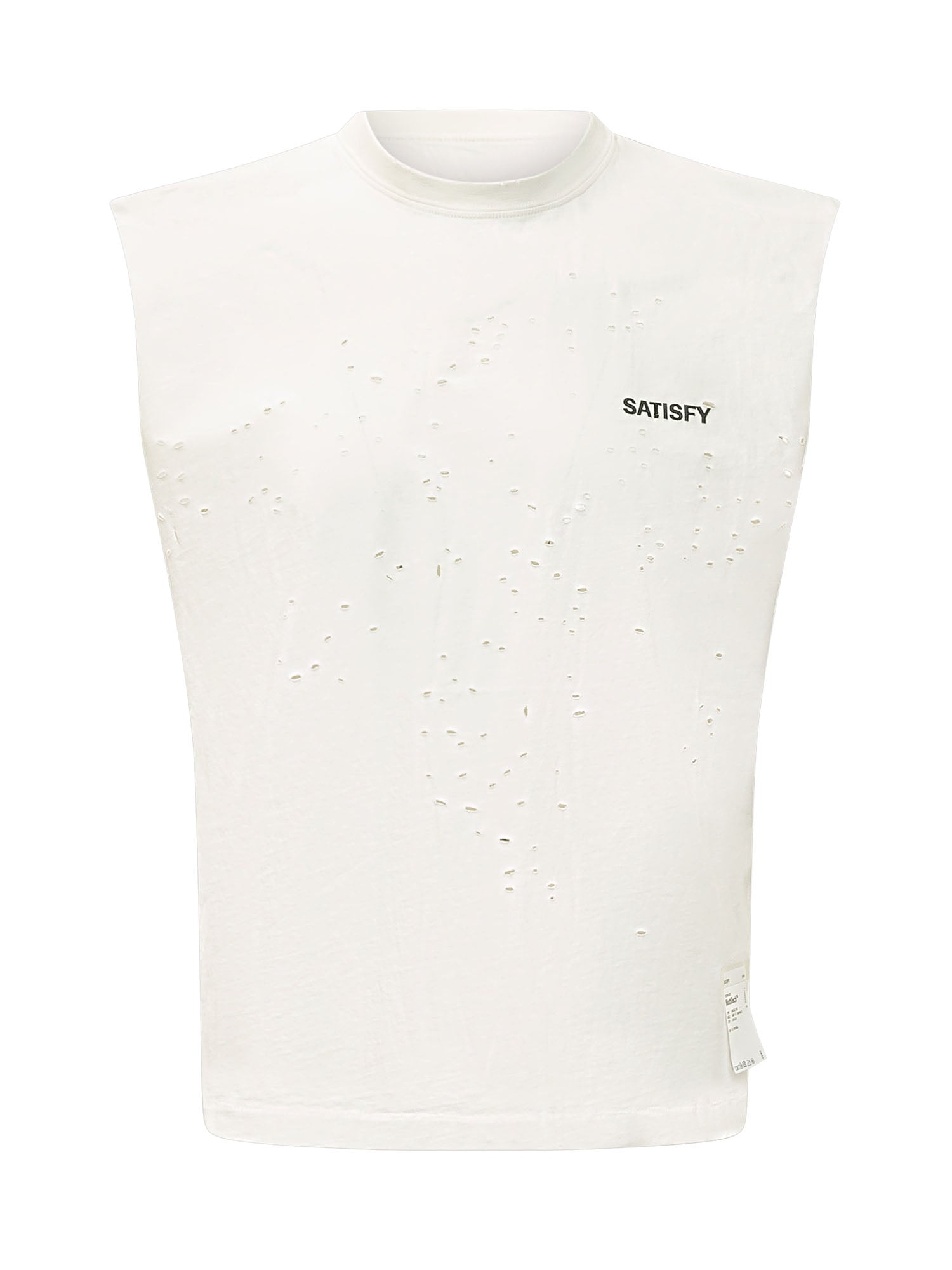 T-shirt senza maniche con girocollo, logo frontale e dettagli traforati all over