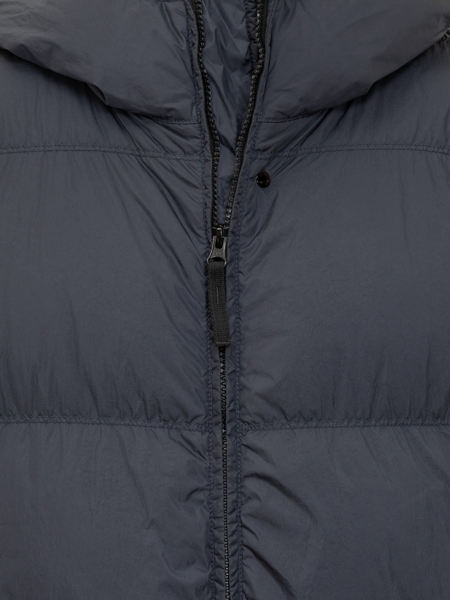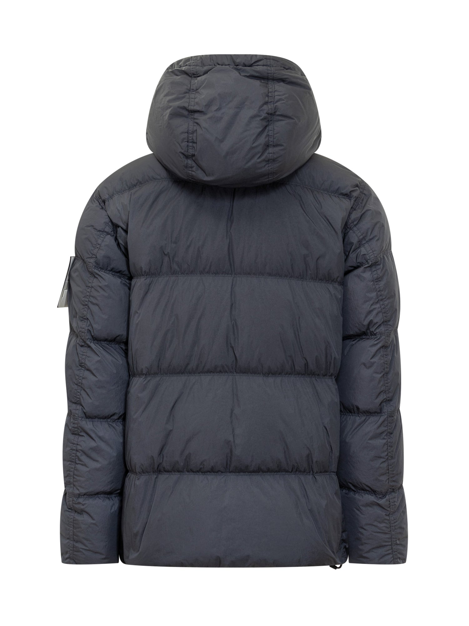 Parka corto Stone Island imbottito con cappuccio, chiusura zip e tasche frontali con patta.
