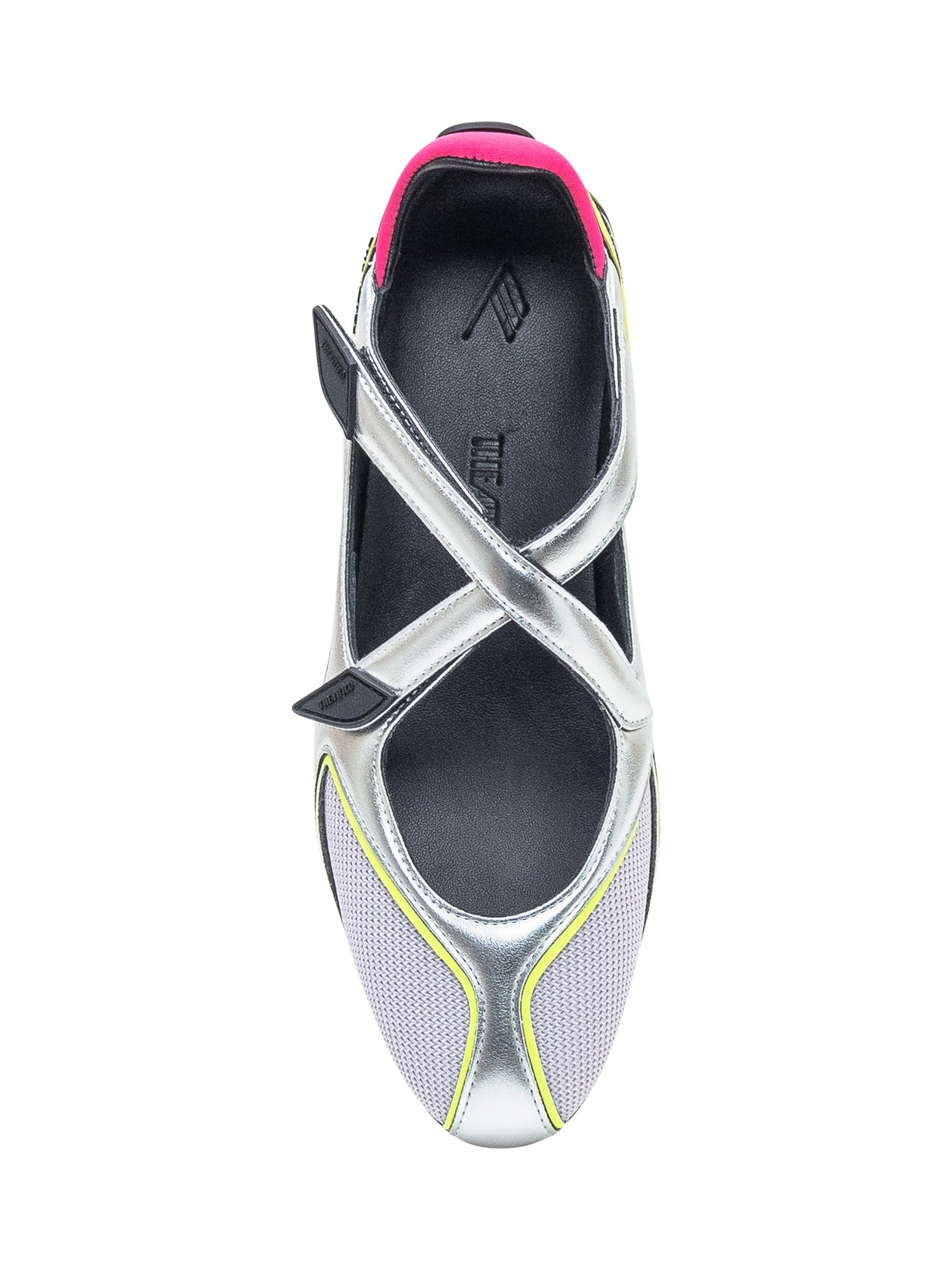 Ballerine d ispirazione sportiva con profilo avvolgente e cinturino a strappo.
