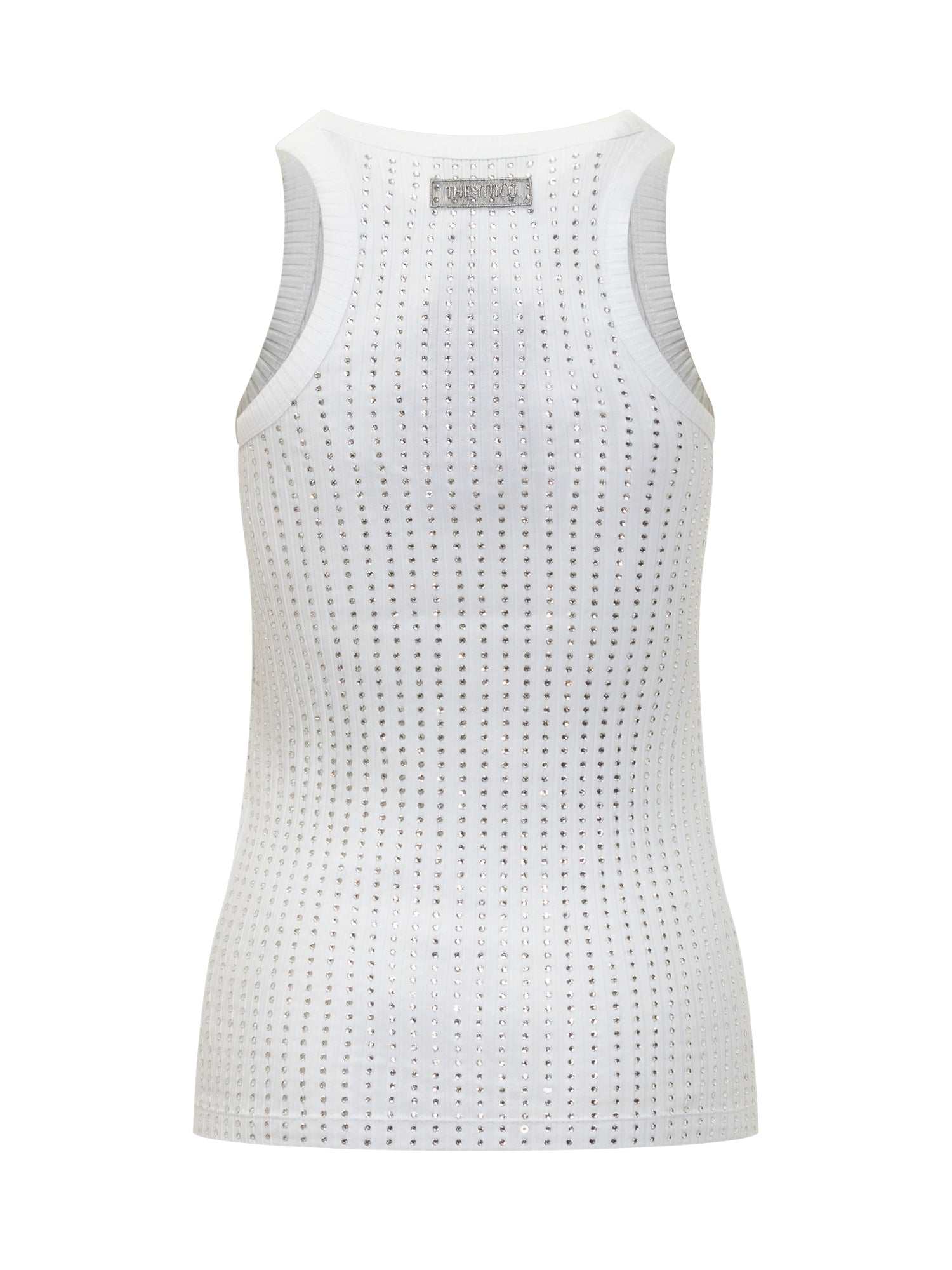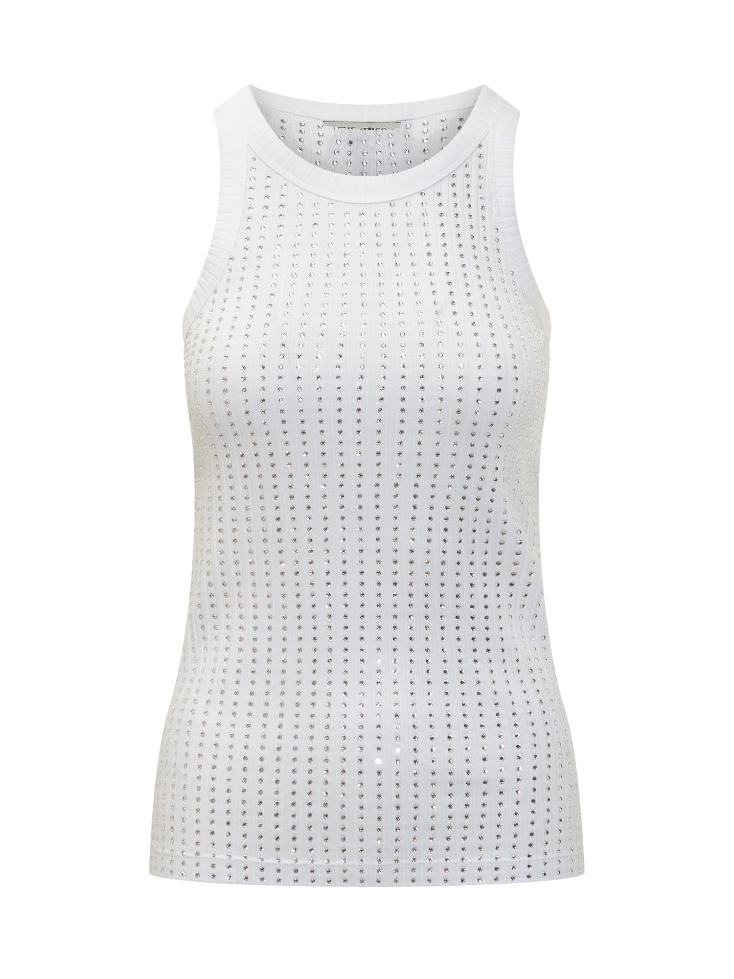 Canotta bianca The Attico in cotone stretch con luminosi strass all-over.