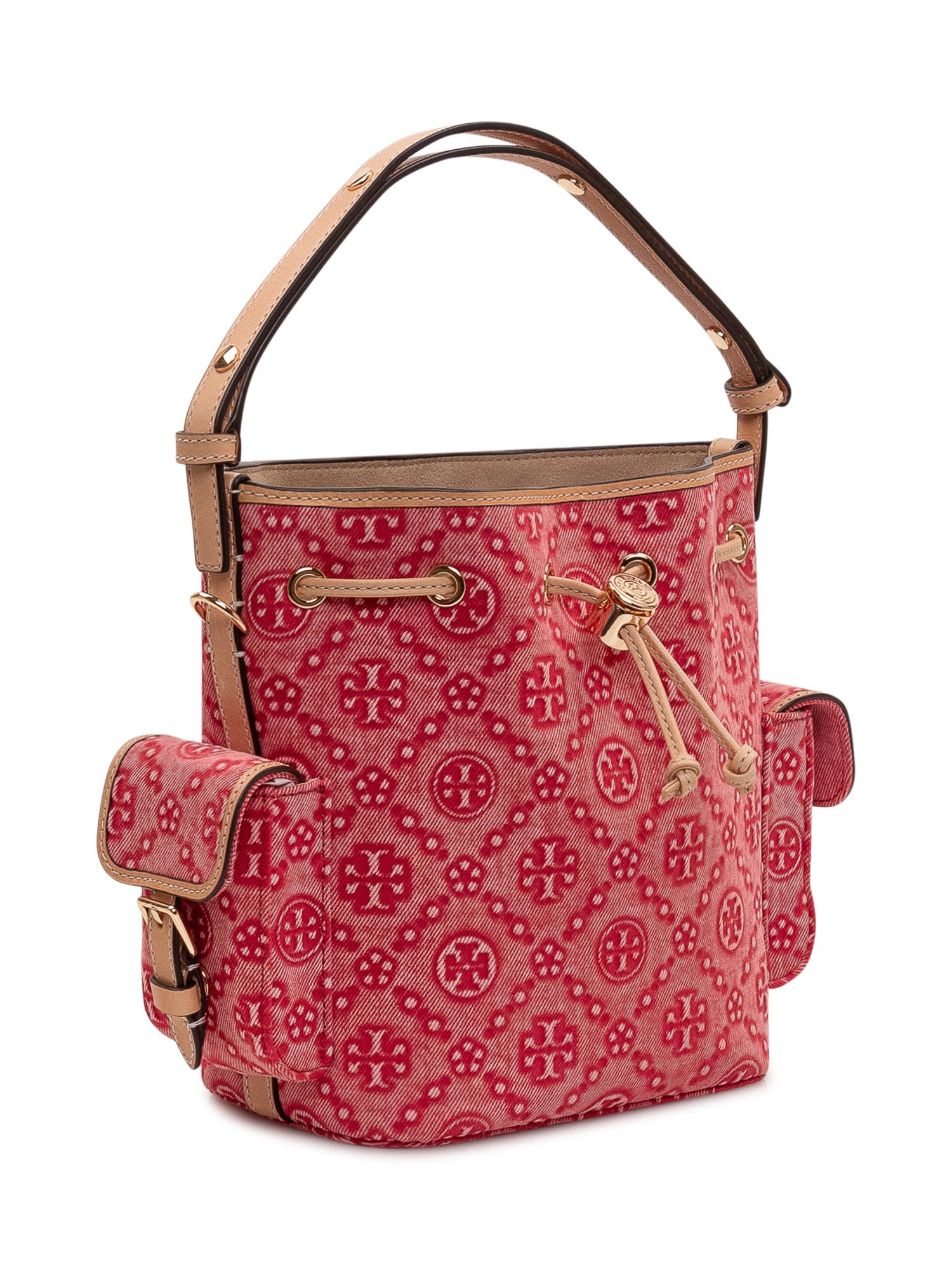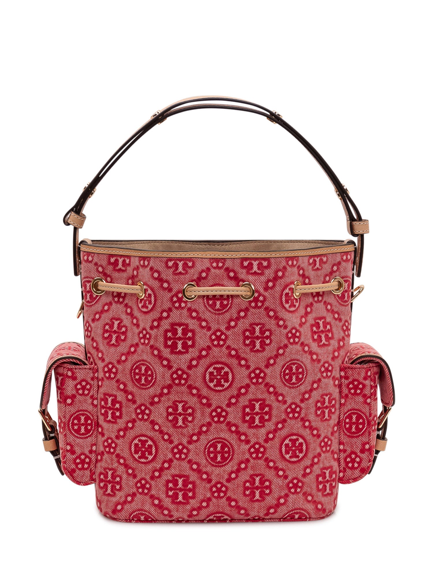 Secchiello con manico superiore regolabile e chiusura con coulisse. Motivo monogram all over con tasche laterali applicate e dettaglio logo frontale, design compatto ideale per organizzare gli oggetti personali.