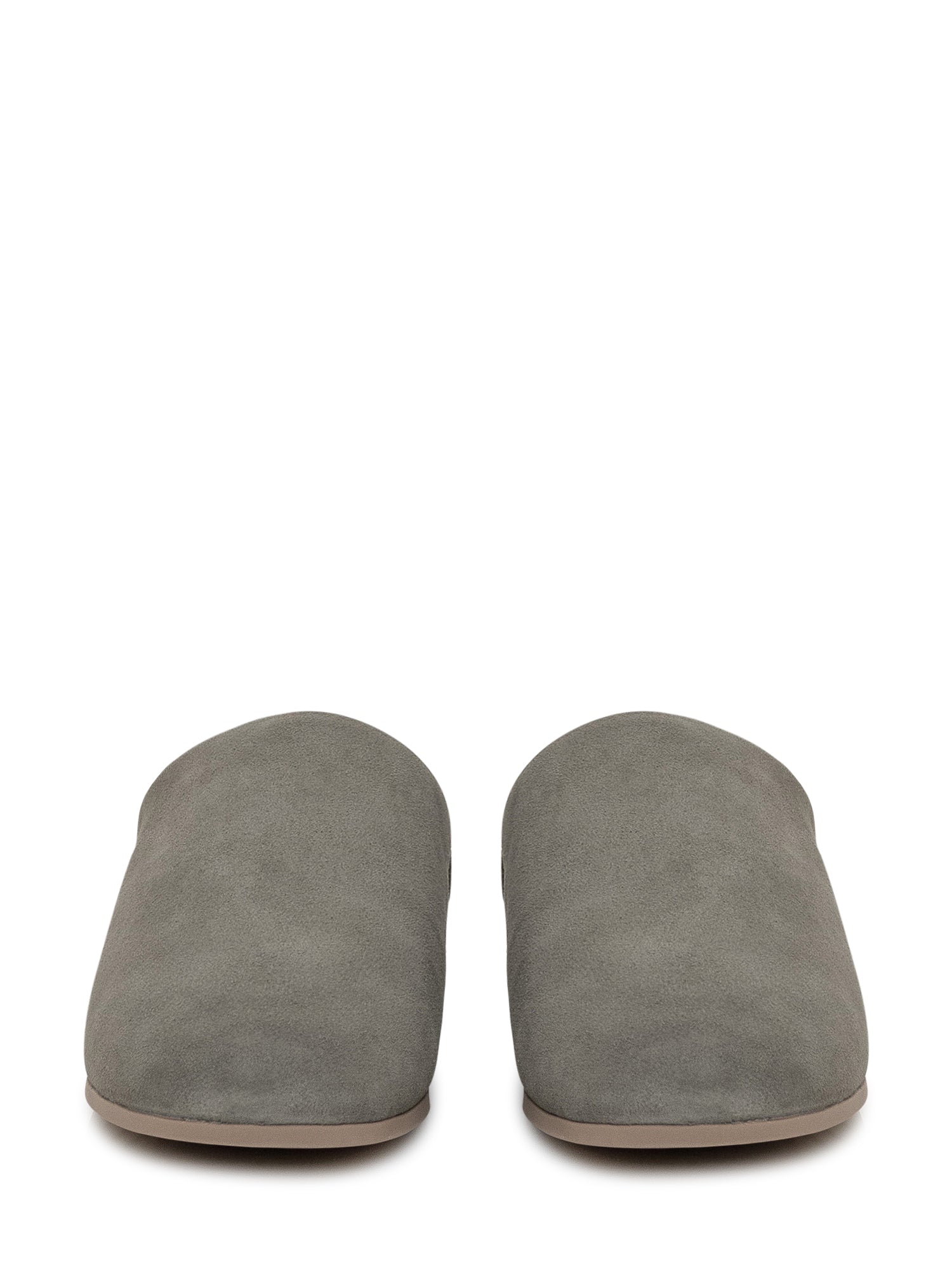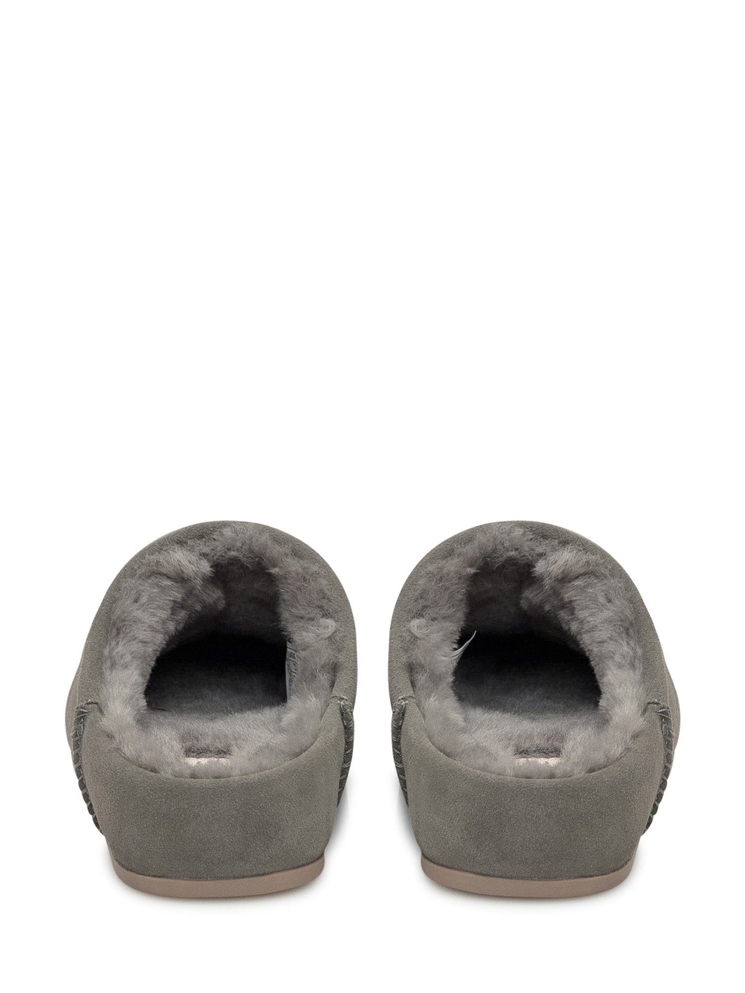 Pantofole UGG in morbido suede grigio con interno in shearling caldo e confortevole.