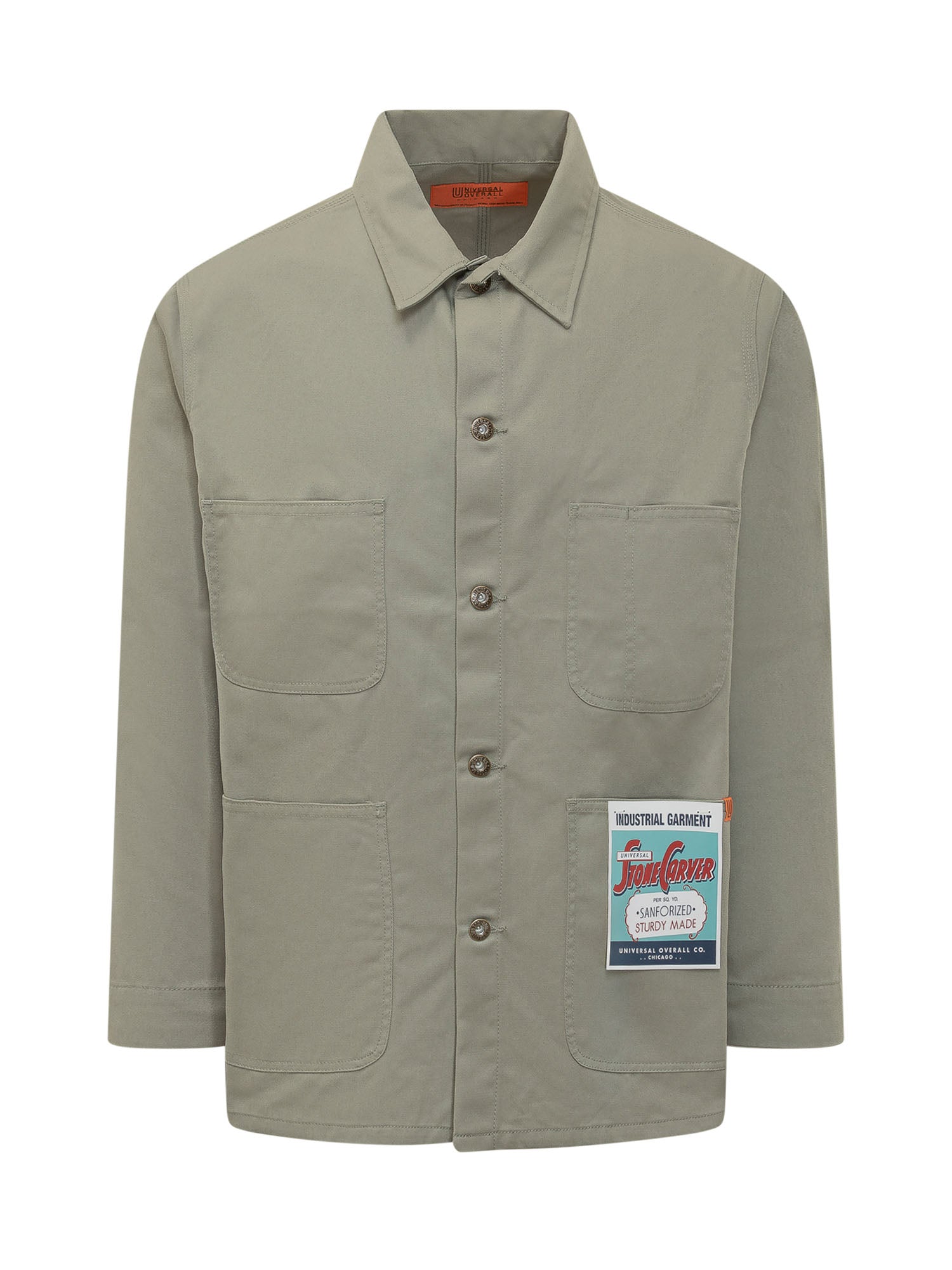Giacca in cotone con trattamento bio wash che conferisce al tessuto una texture morbida e un aspetto leggermente vissuto. Il design workwear presenta colletto classico, chiusura frontale con bottoni e quattro tasche applicate sul davanti per unire funzionalità e stile essenziale.