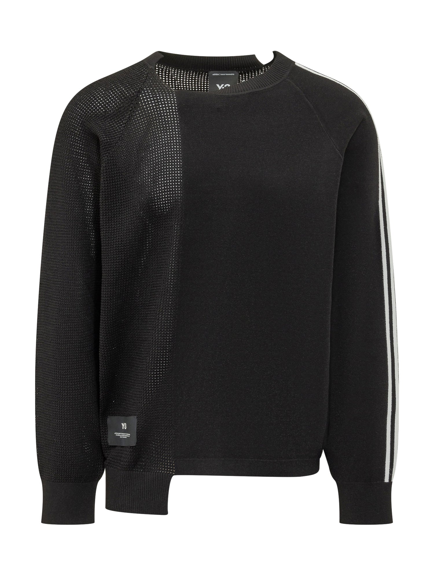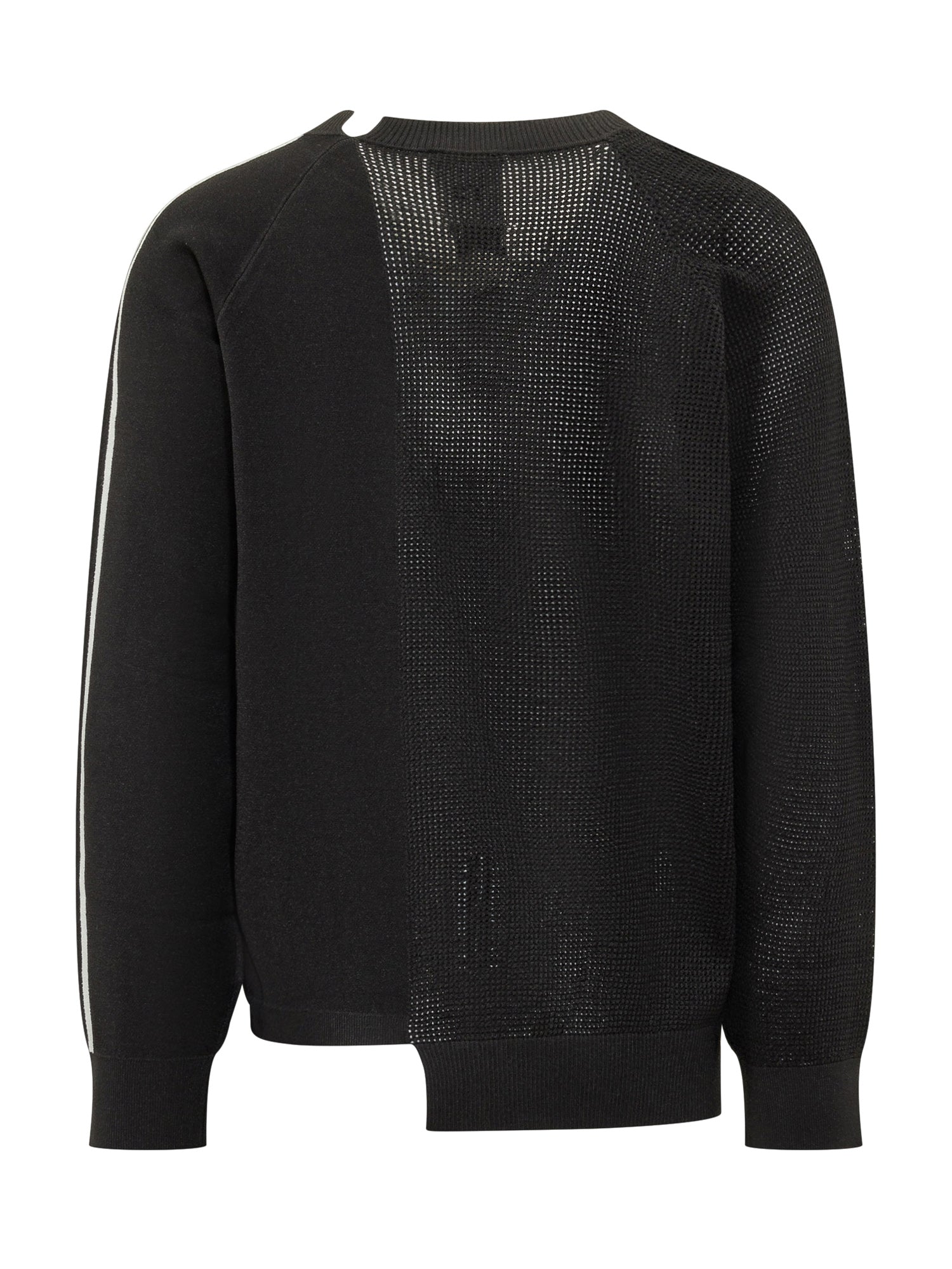 Maglione girocollo in maglia con maniche lunghe, inserti a rete traspirante su un lato, dettaglio a bande sulla manica, polsi e fondo a costina.
