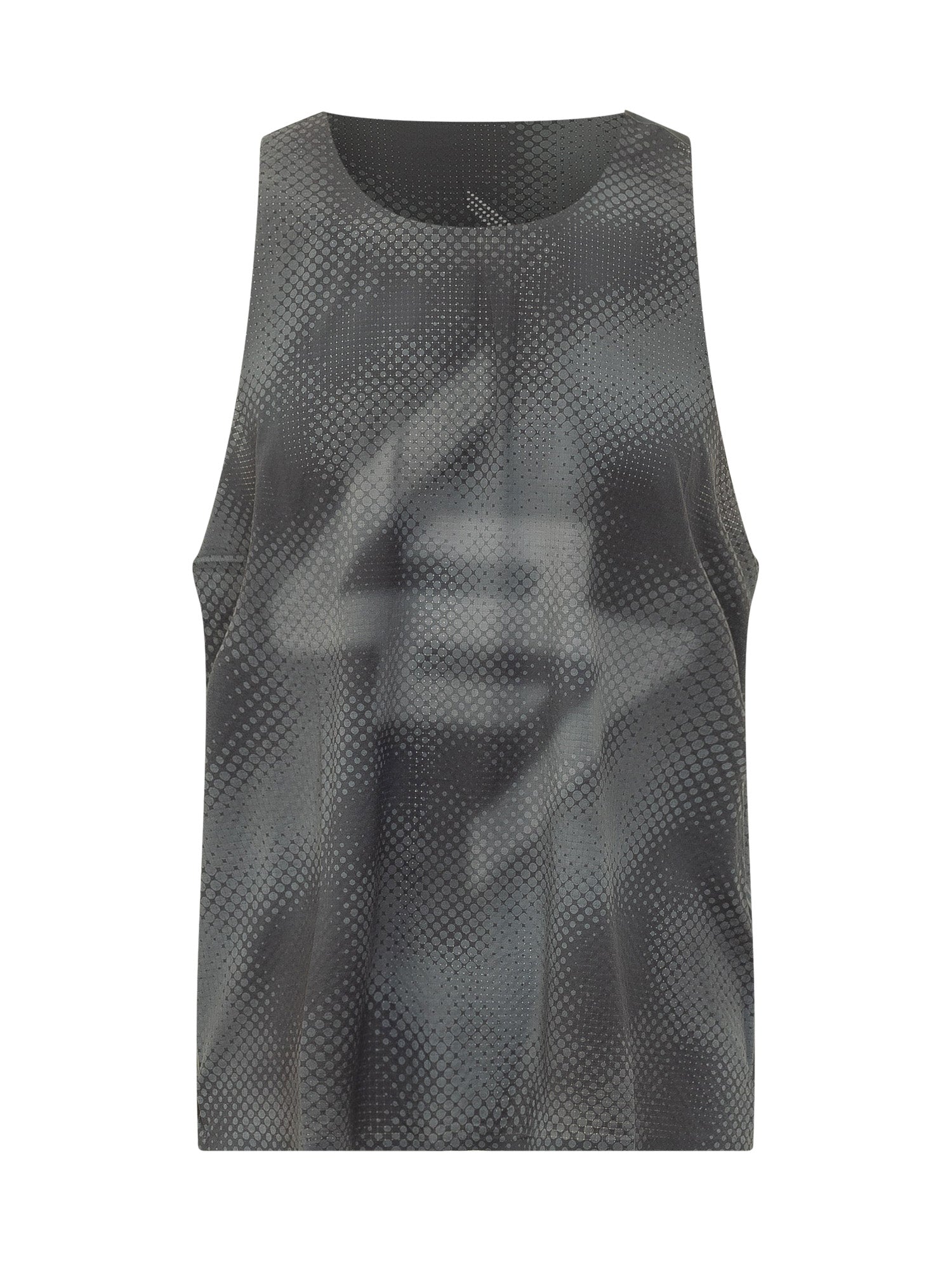 Singlet with wide neckline and sleeveless design. Straight cut with fluid structure and all over graphic pattern. Lightweight model suitable for sports and leisure activities.