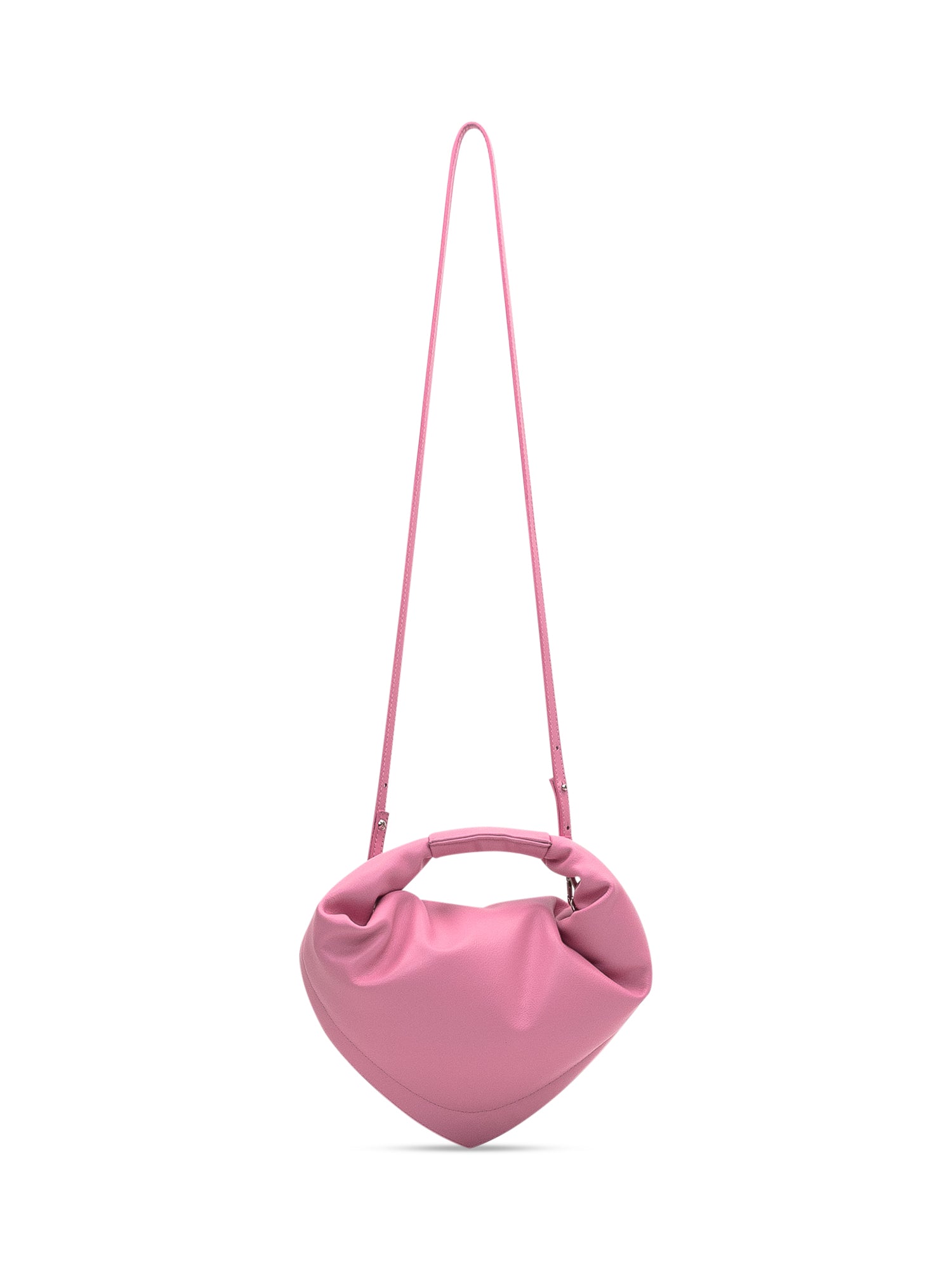 Pink leather bag. A handle. Removable shoulder strap. Closure on the back with zip. Internal padding.