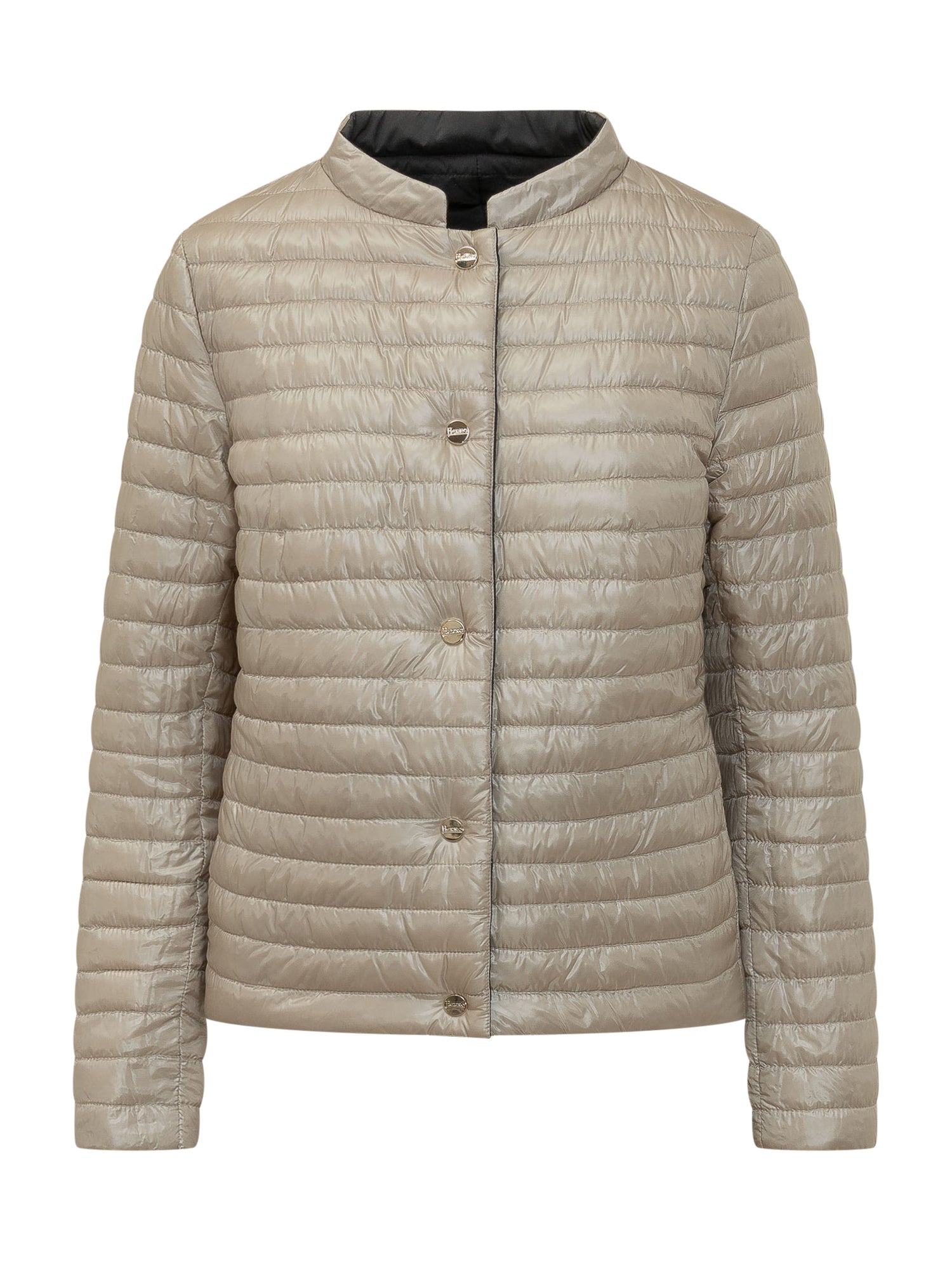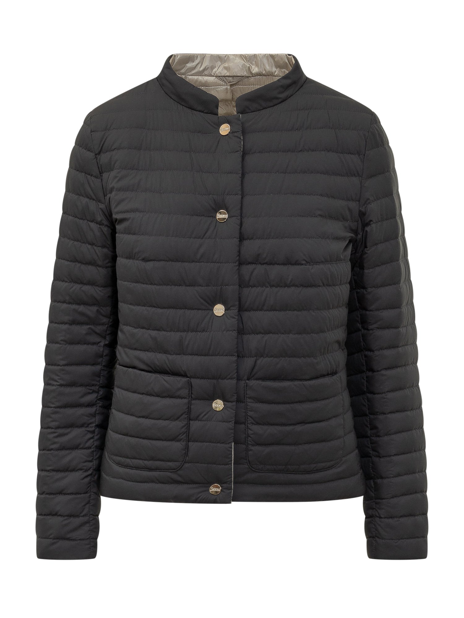 Piumino corto dal taglio semplice, con chiusura a bottoni dorati e tasche laterali. Perfetto per affrontare il freddo con stile.