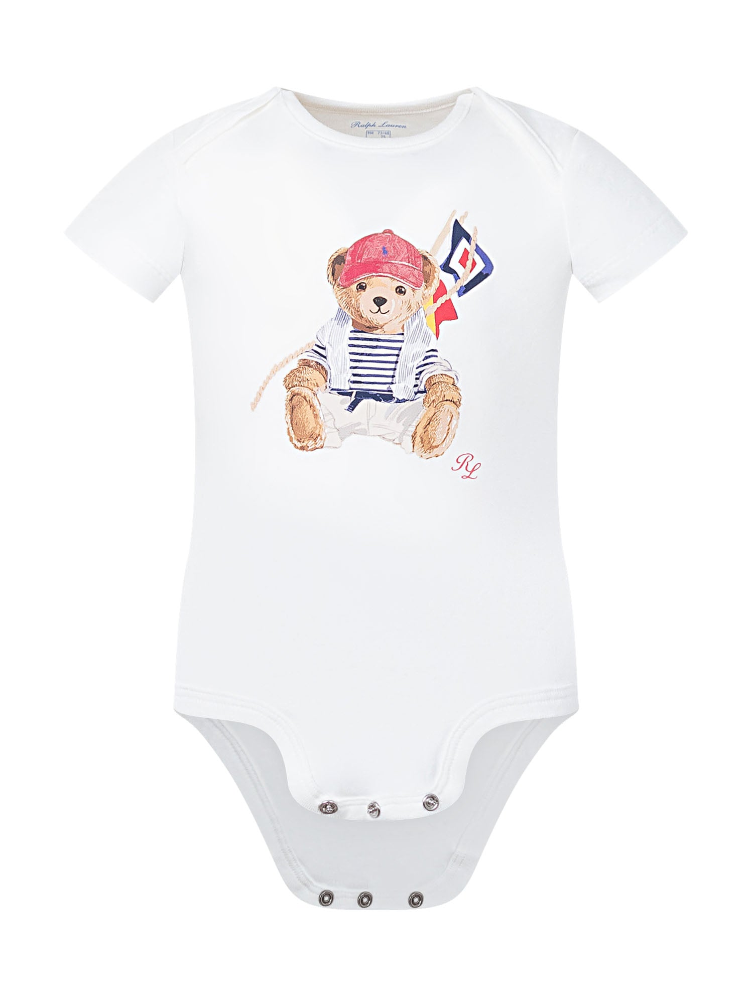 Baby bodysuit in soft jersey with short sleeves, featuring a Polo Bear front print and snap-button closure at the bottom for easy changing.