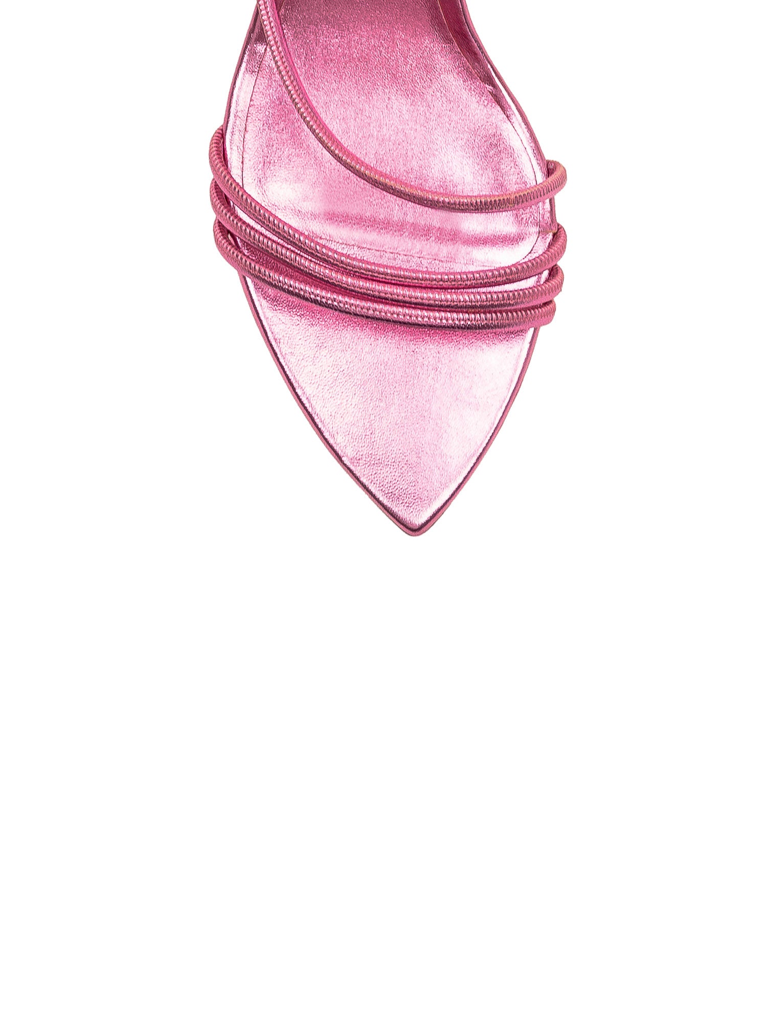 Silver and golden leather sandal with heel. Adjustable strap. Tapered toe. Logo on the inner sole.