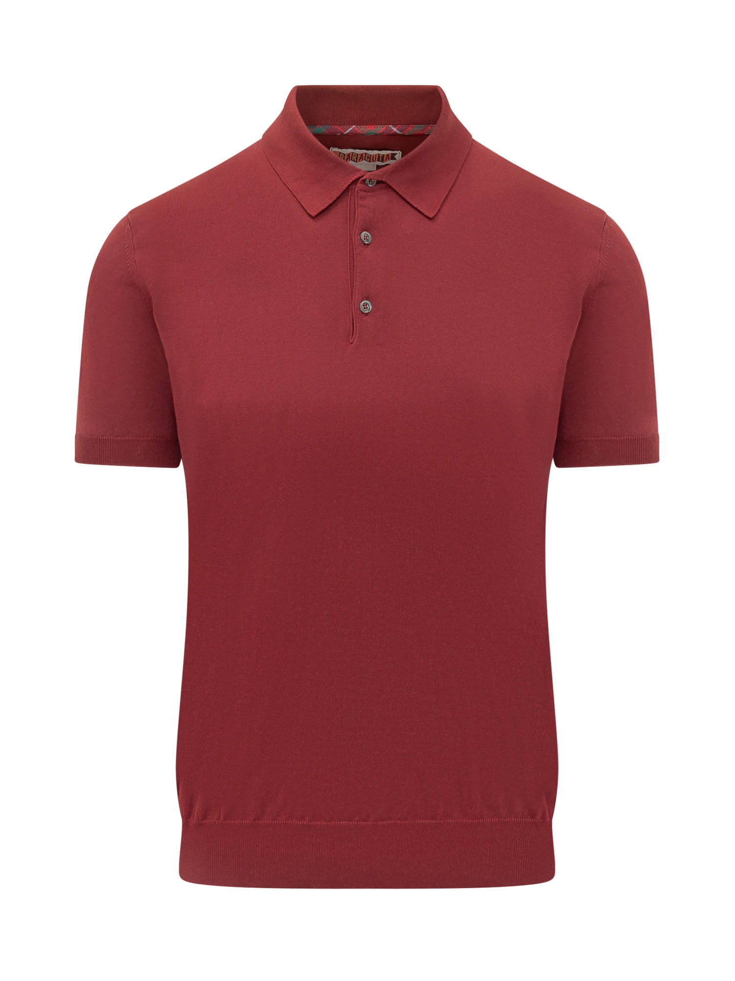 Short sleeve knit polo with classic collar and button closure. Lightweight structure with ribbed edges.