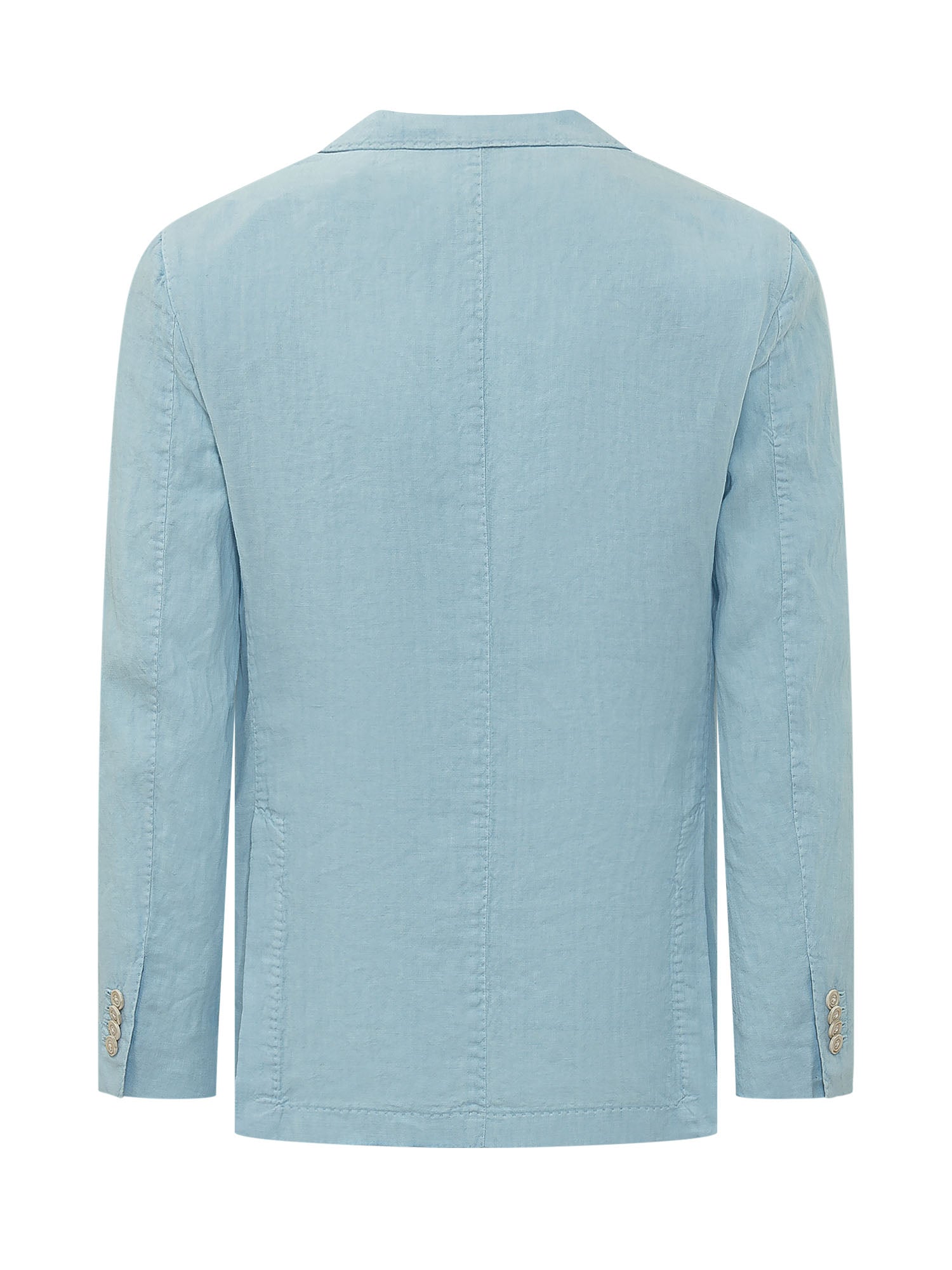 Suit with single breasted jacket and matching trousers, clean design with front closure.
