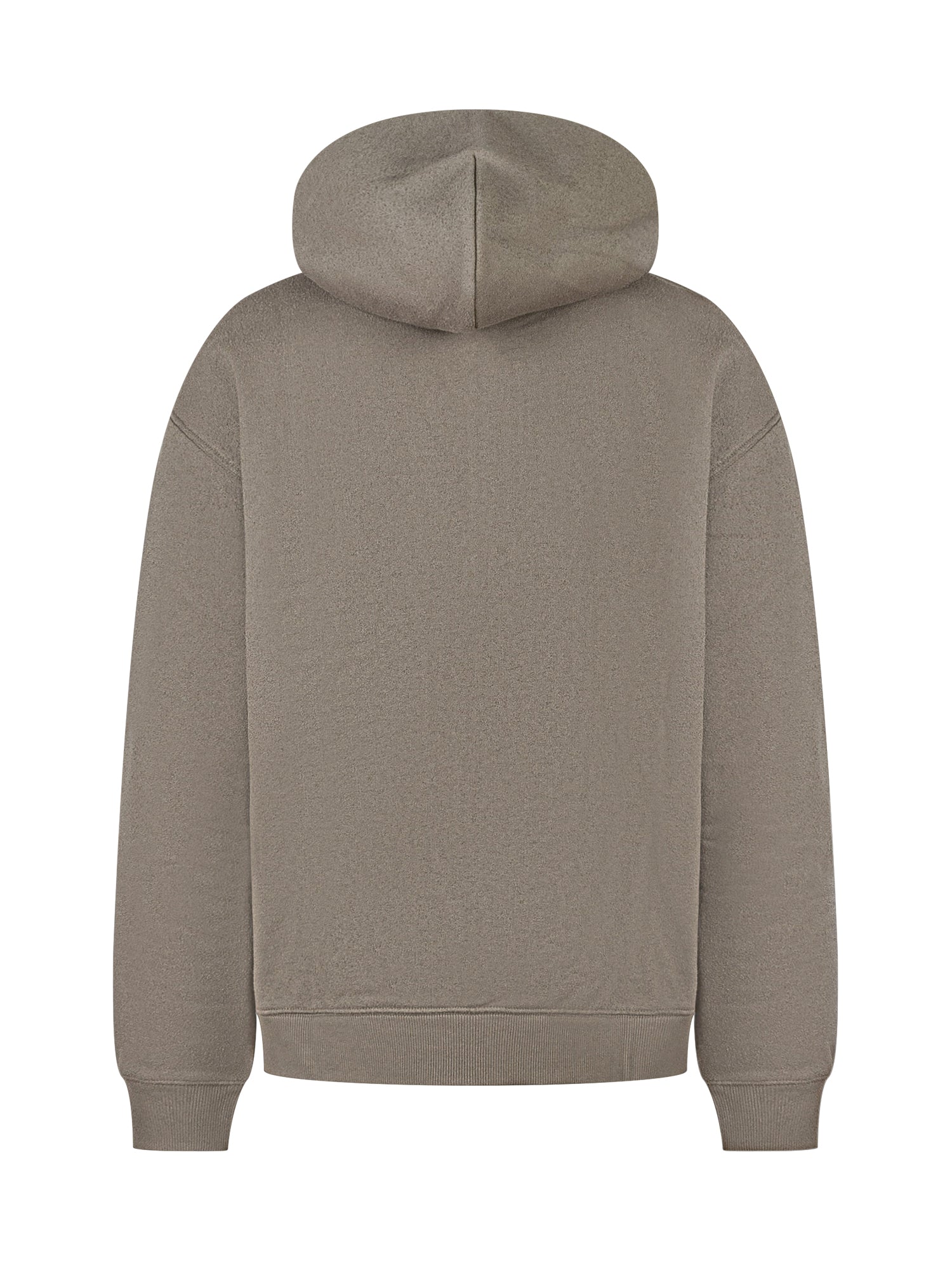 Dickies khaki hoodie with adjustable hood and front zip closure. Features kangaroo pockets and logo patch.