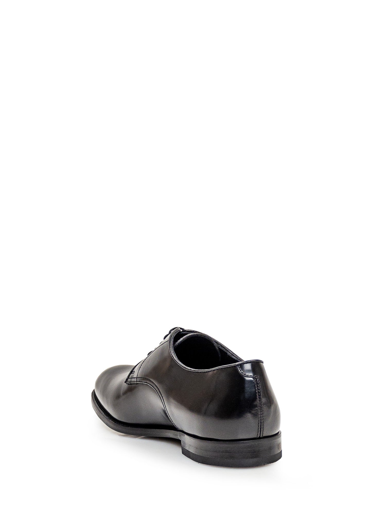 Black smooth leather lace-up. Lace-up closure. Low heel. Logo on insole.