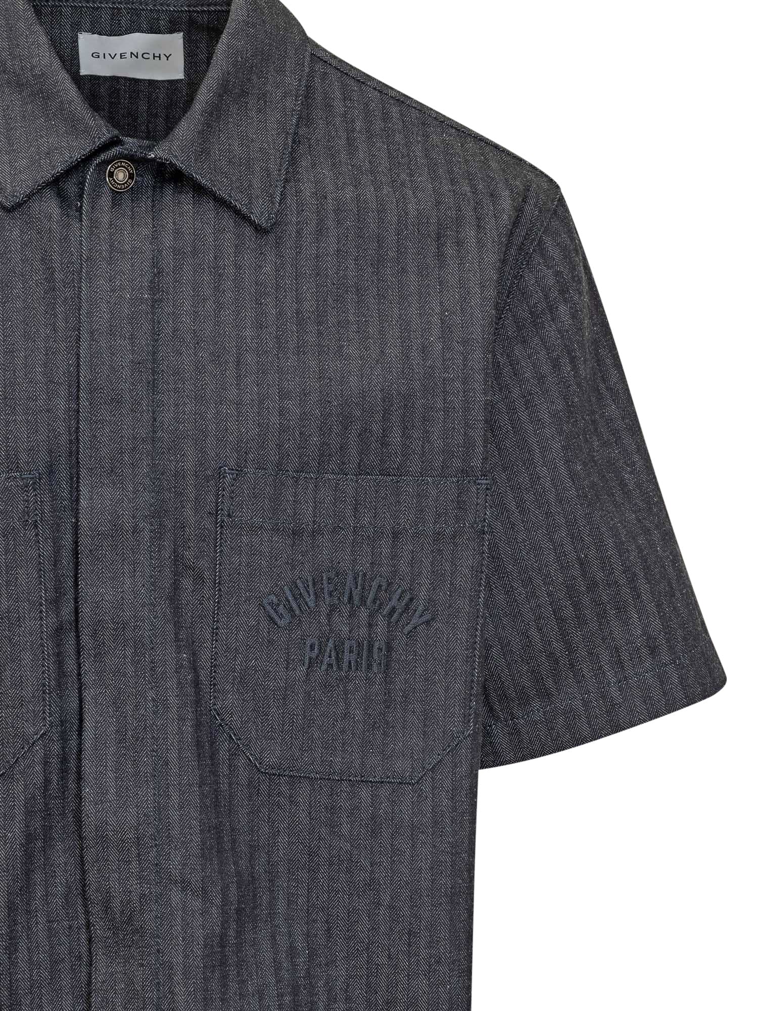 Givenchy short-sleeve shirt in striped grey fabric with front pockets and tonal embroidered logo.