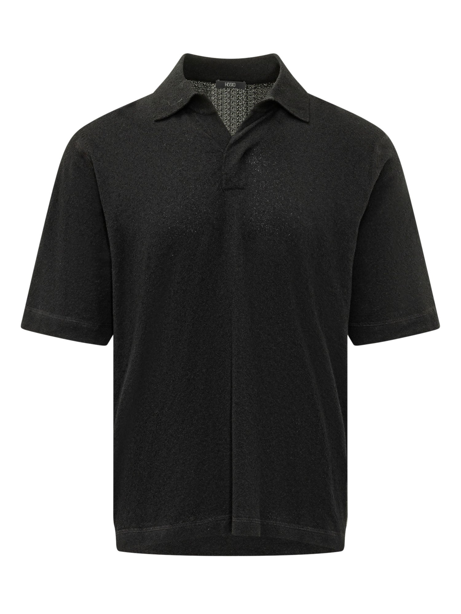 Polo with short sleeves and classic collar, terry effect texture all over with front opening and ribbed trims