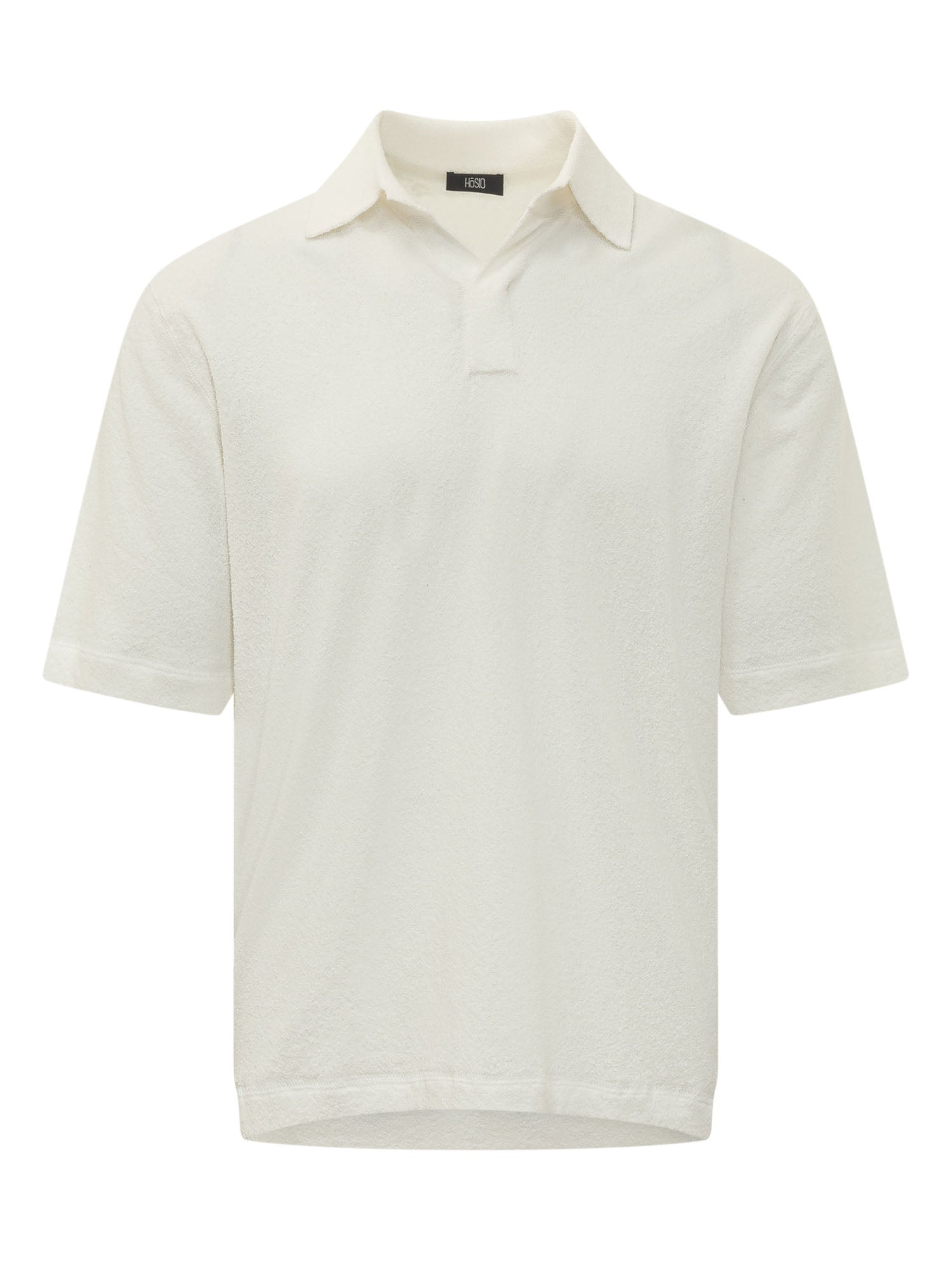 Polo with short sleeves and classic collar, terry effect texture all over with front opening and clean design