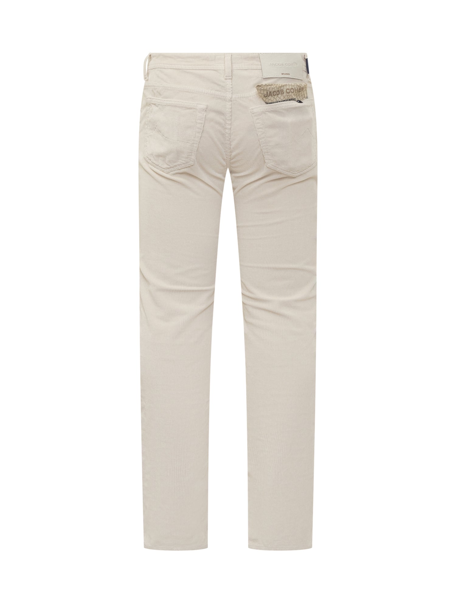 Jacob Cohen beige corduroy pants with five pockets and button-zip closure. Clean and refined design.