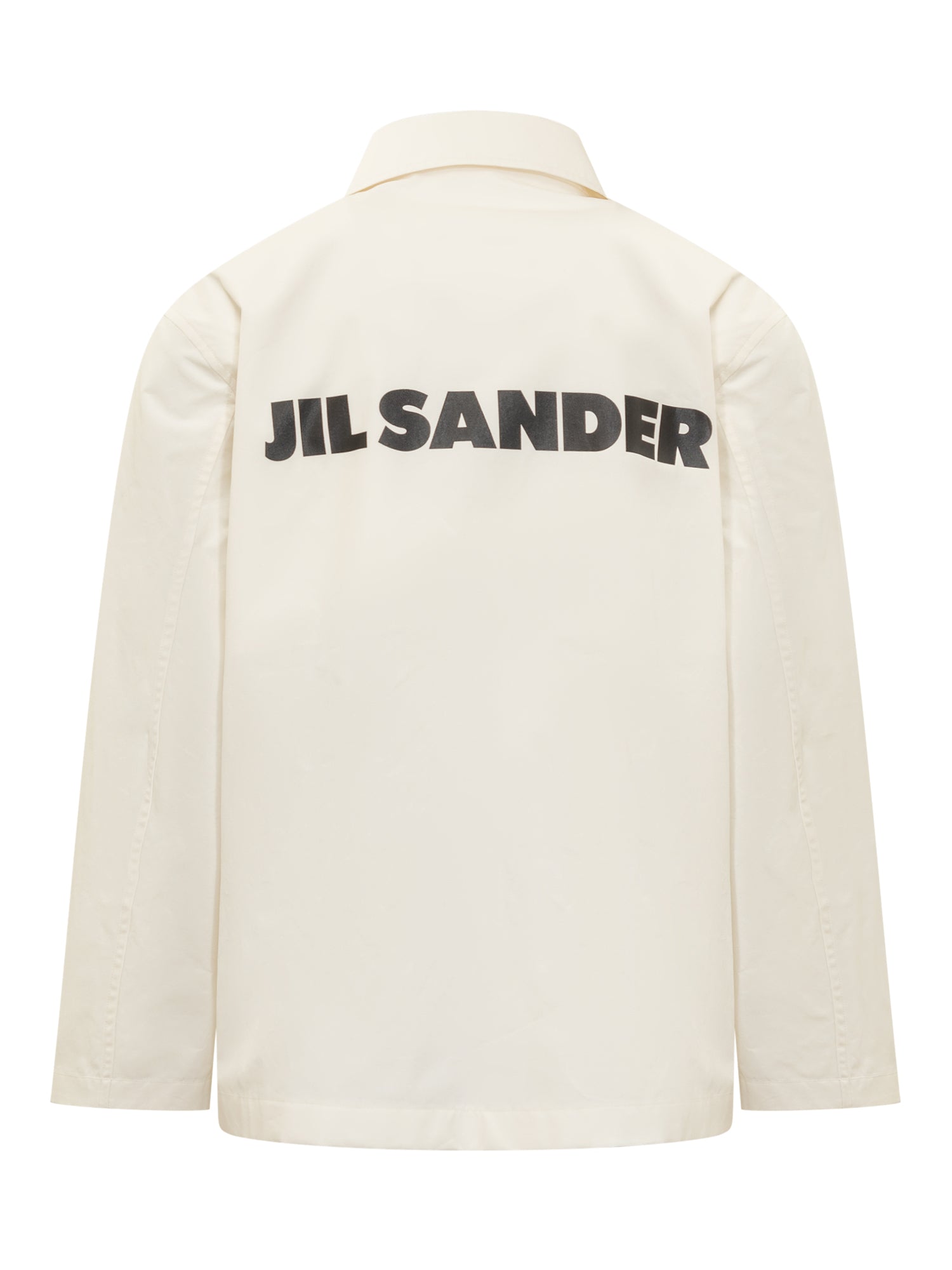 Blouson jacket with long sleeves. Classic collar. Button closure. Cuffs with buttons. Two side pockets. Logo printed on the back.