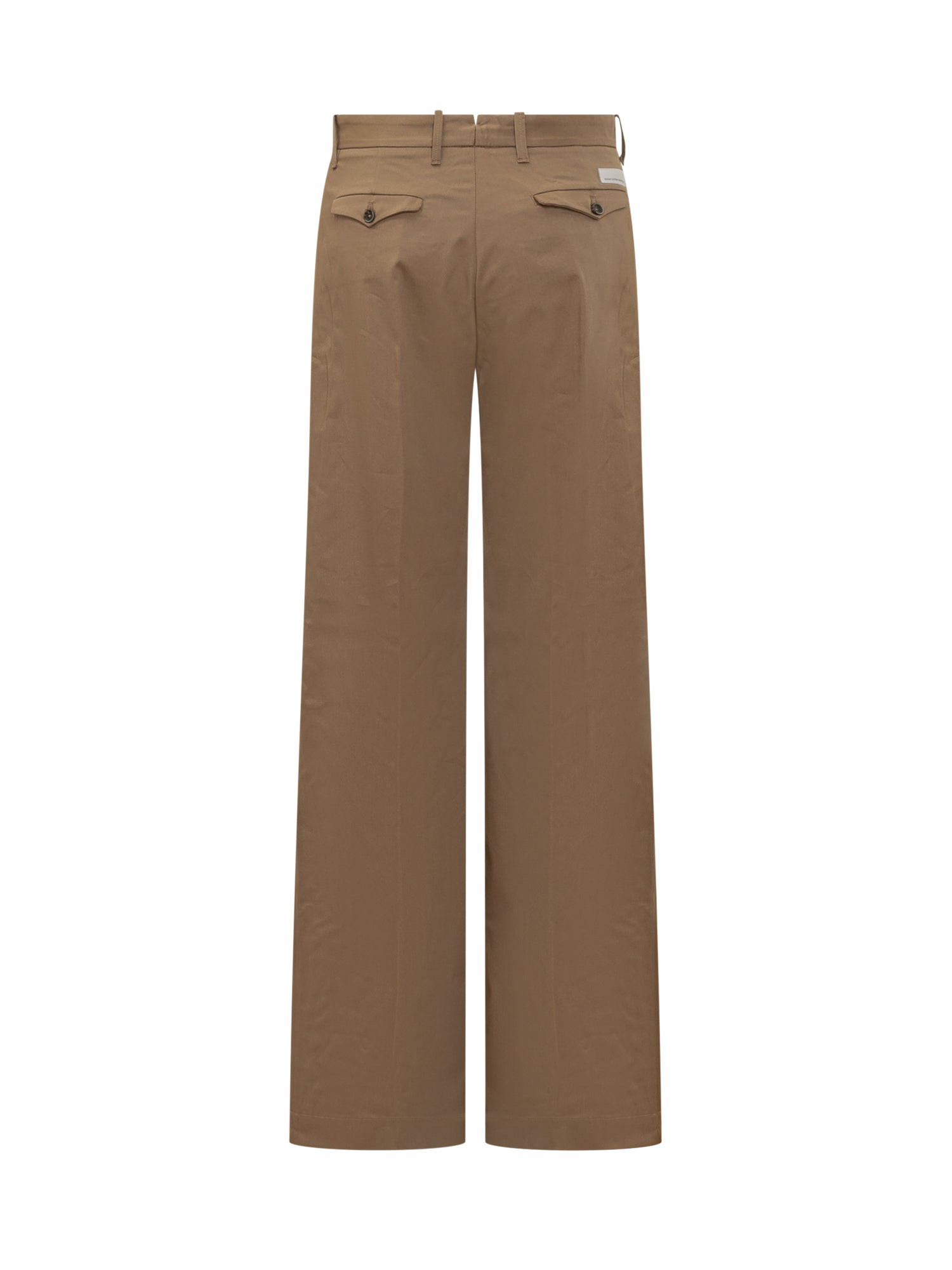 Brown cotton trousers. Wide leg. Belt loops. Pockets. Closure with button and zip.