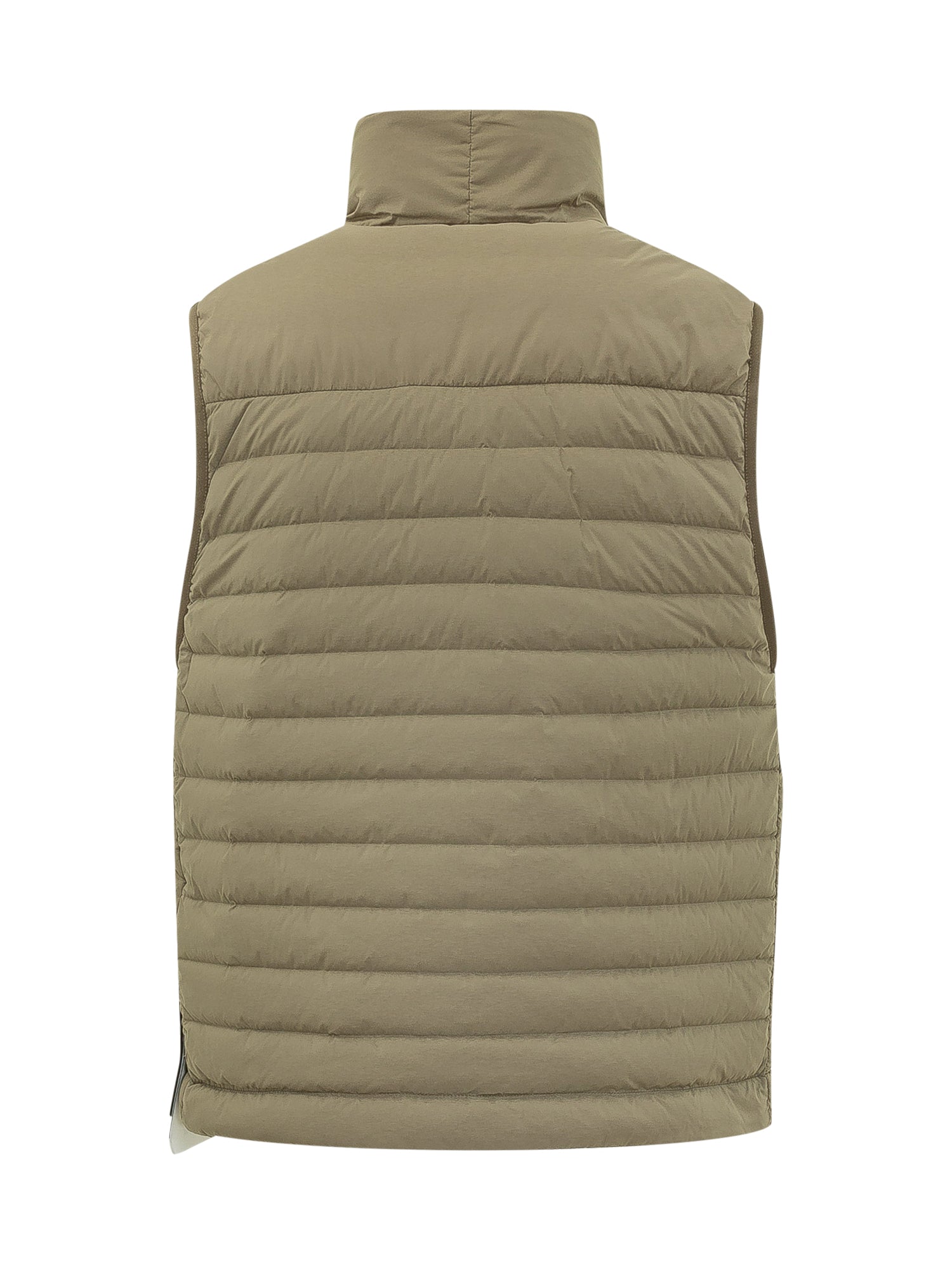 Padded vest featuring a front zip closure and high collar. Equipped with zip pockets for everyday practicality. Clean design, ideal for layering and urban wear during transitional seasons.
