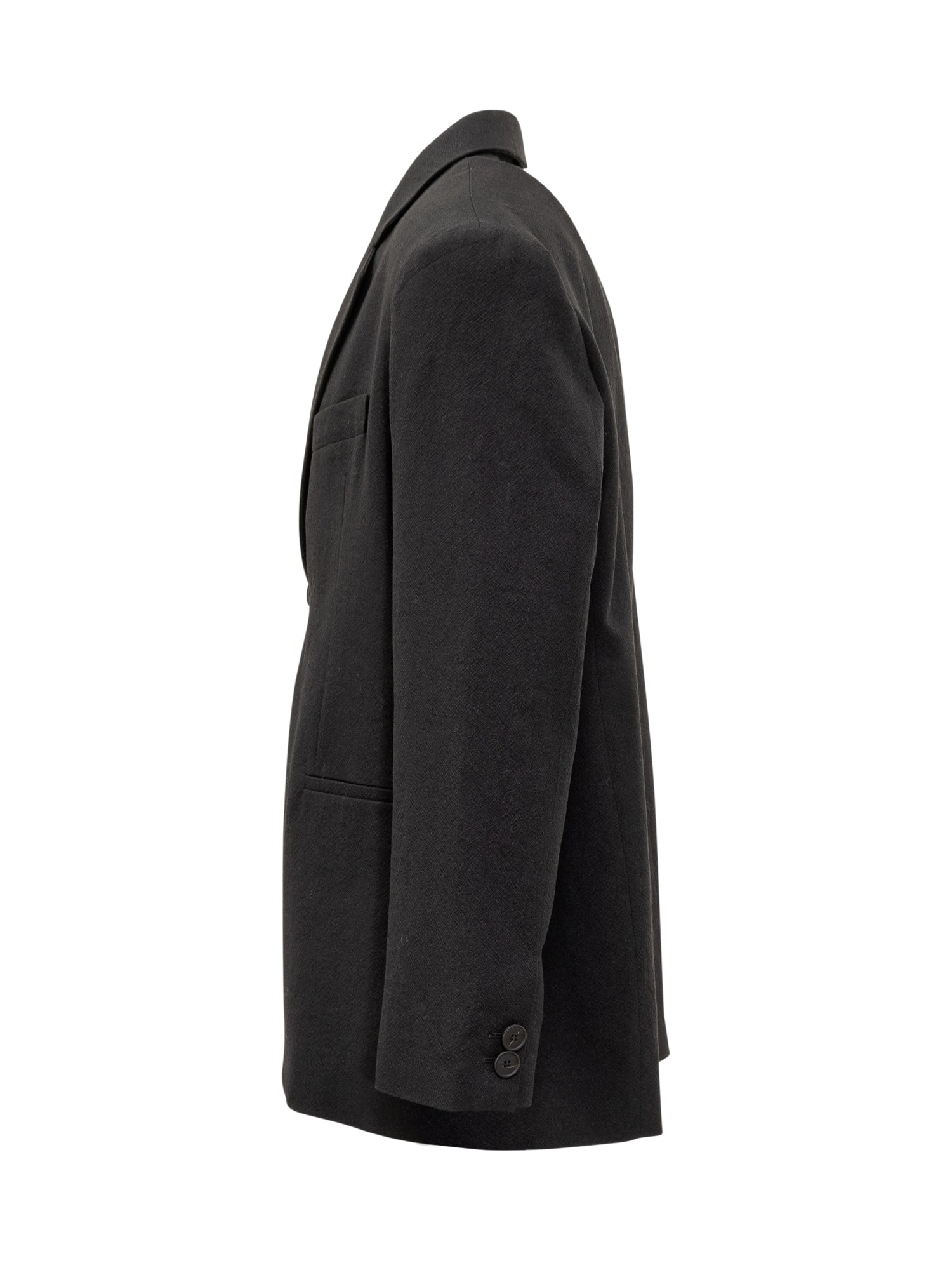 Studio Nicholson black structured fabric blazer. Single-breasted design with two-button closure, classic lapels and side pockets.